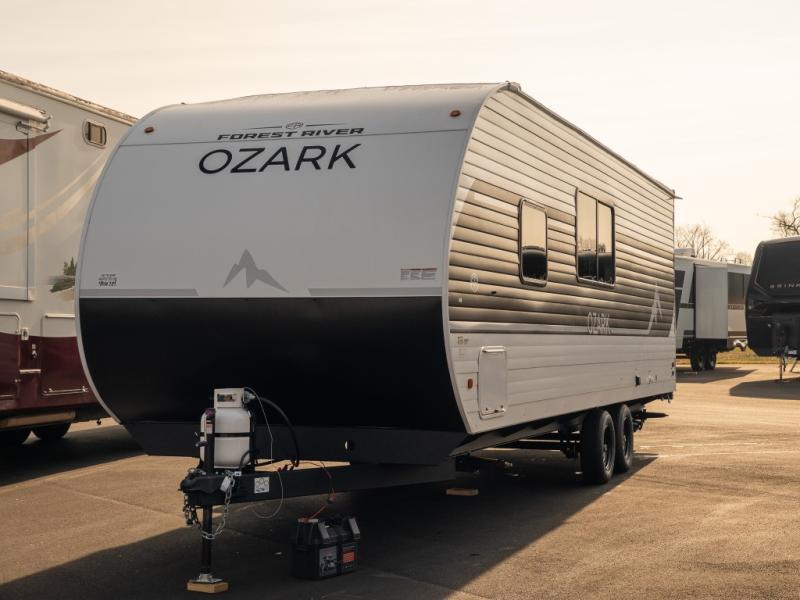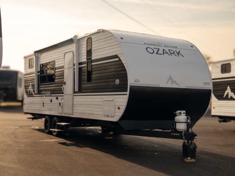 With any Ozark travel trailer or toy hauler by Forest River, you can expect lightweight towing, tons of standard features, and a great value! Each one is built with solid materials, including fiberglass insulation throughout, front diamond plate rock guard for added protection, and a powder coated I-beam frame with camber for more structural support! The stylish interior will have you feeling right at home, and you'll find plenty of storage spaces for your personal belongings, camp gear, and more. And since there are a variety of floorplans to choose from, including Limited Edition travel trailers, single axle and dual axle models, plus toy haulers, you're sure to find the Ozark that fits your needs!