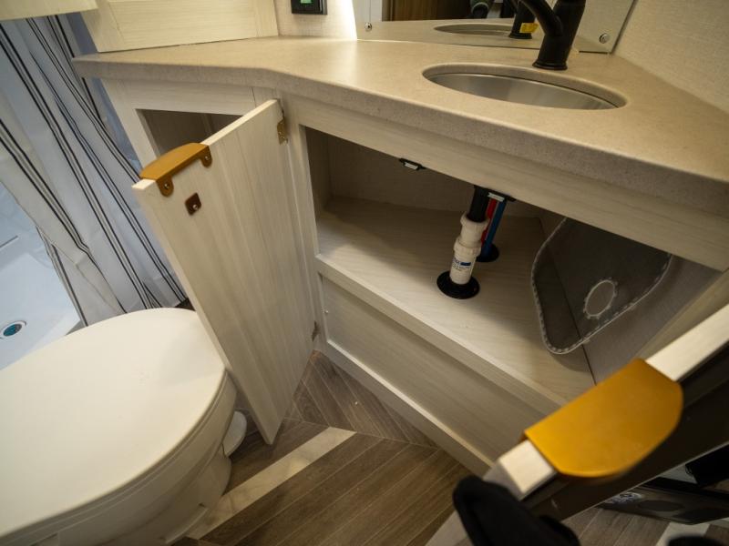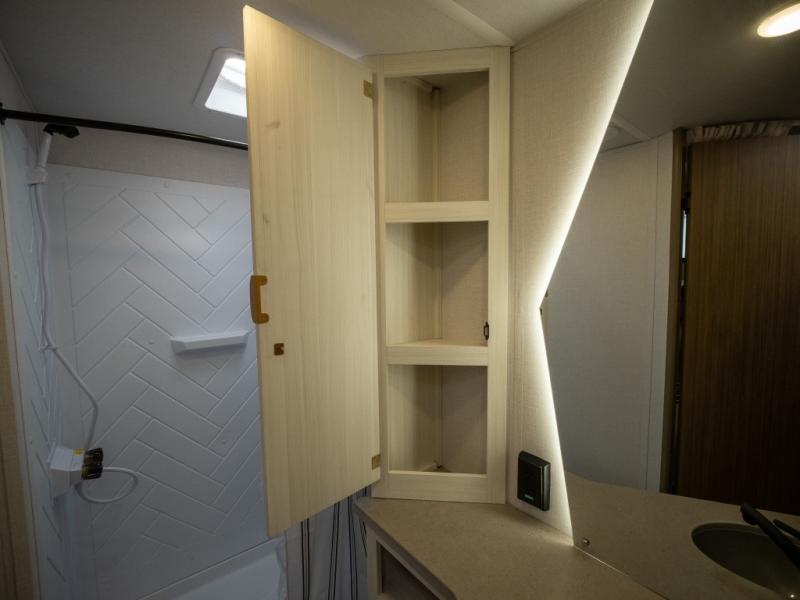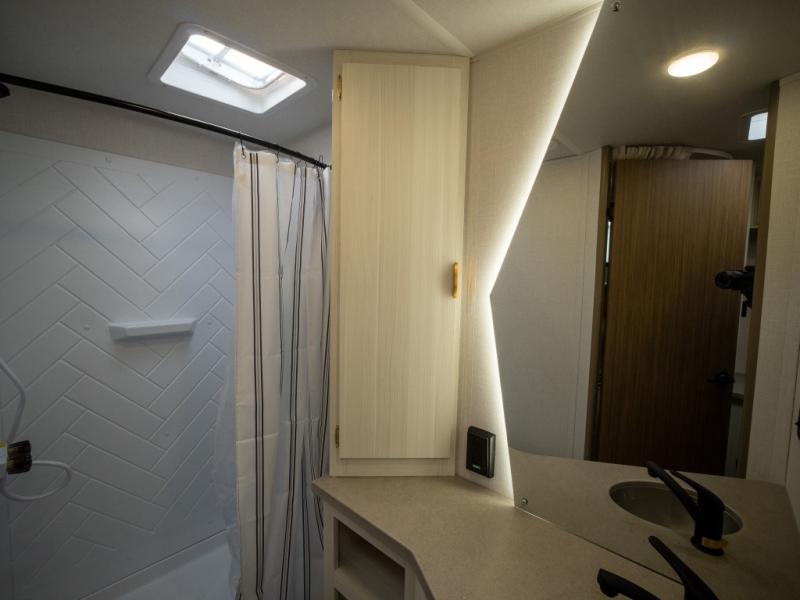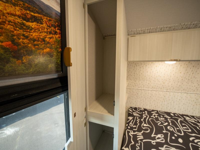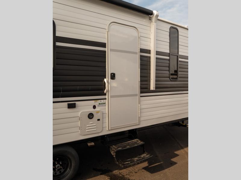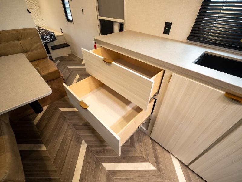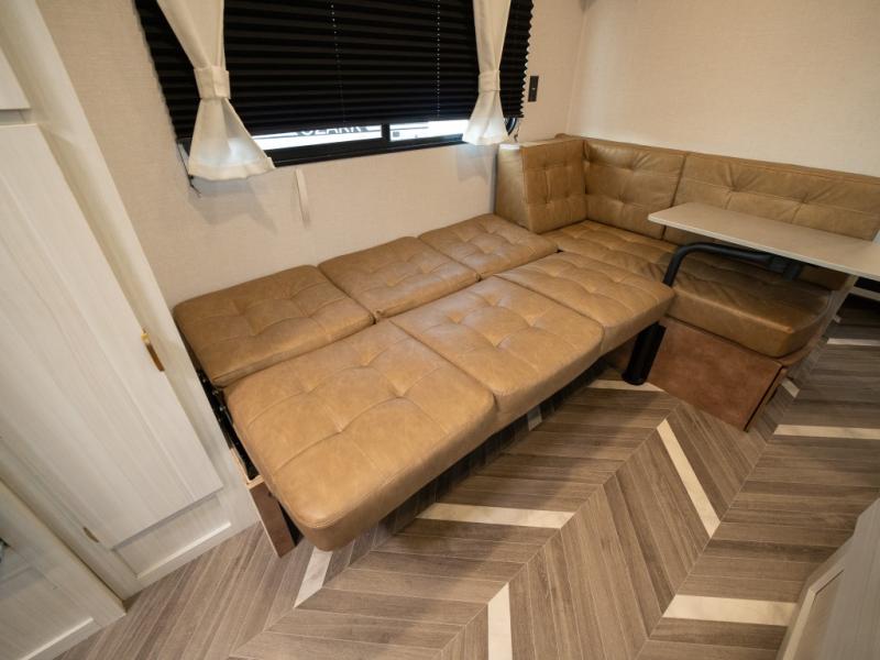 This trailer resembles the layout of 2300RB, but you'll enjoy added double-size bunks in the rear corner, with a full bath in the other rear corner! You'll have the front private bedroom all to yourselves with a king bed and dual wardrobes, and other guests can sleep on the L-shaped sofa when it's not being used to relax on. The kitchen on this Ozark includes a 3-in-1 cooktop with a convection microwave, and a window by the sink so you can have open views as you clean up. There is also a pantry and a 12V refrigerator to keep food stocked!