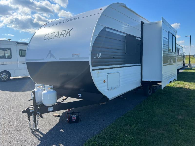 With any Ozark travel trailer or toy hauler by Forest River, you can expect lightweight towing, tons of standard features, and a great value! Each one is built with solid materials, including fiberglass insulation throughout, front diamond plate rock guard for added protection, and a powder coated I-beam frame with camber for more structural support! The stylish interior will have you feeling right at home, and you'll find plenty of storage spaces for your personal belongings, camp gear, and more. And since there are a variety of floorplans to choose from, including Limited Edition travel trailers, single axle and dual axle models, plus toy haulers, you're sure to find the Ozark that fits your needs!