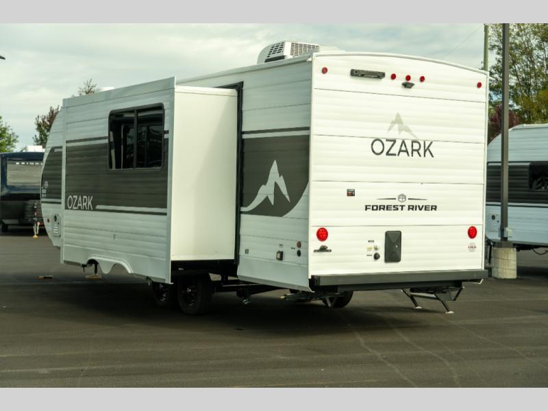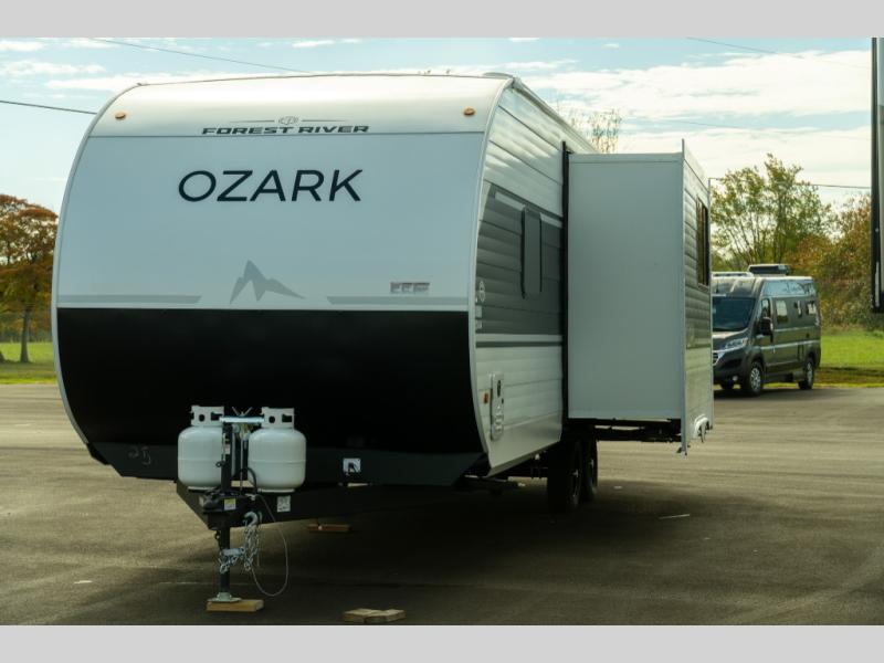 With any Ozark travel trailer or toy hauler by Forest River, you can expect lightweight towing, tons of standard features, and a great value! Each one is built with solid materials, including fiberglass insulation throughout, front diamond plate rock guard for added protection, and a powder coated I-beam frame with camber for more structural support! The stylish interior will have you feeling right at home, and you'll find plenty of storage spaces for your personal belongings, camp gear, and more. And since there are a variety of floorplans to choose from, including Limited Edition travel trailers, single axle and dual axle models, plus toy haulers, you're sure to find the Ozark that fits your needs!