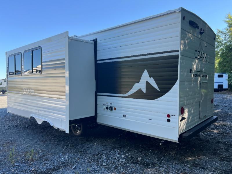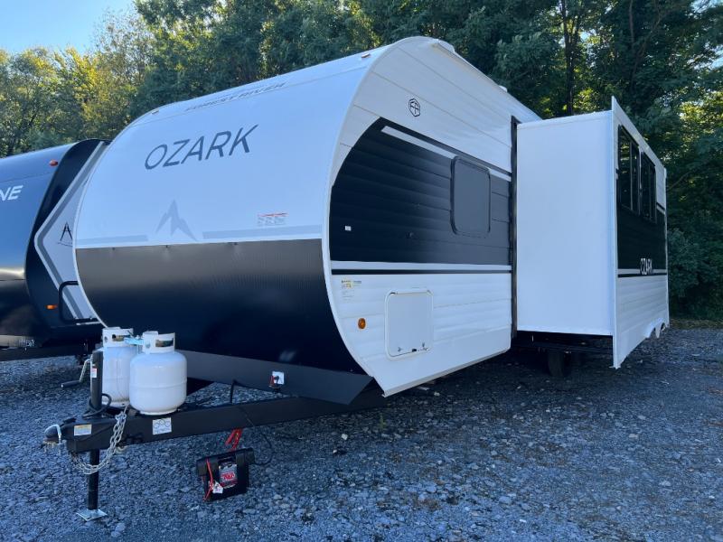 With any Ozark travel trailer or toy hauler by Forest River, you can expect lightweight towing, tons of standard features, and a great value! Each one is built with solid materials, including fiberglass insulation throughout, front diamond plate rock guard for added protection, and a powder coated I-beam frame with camber for more structural support! The stylish interior will have you feeling right at home, and you'll find plenty of storage spaces for your personal belongings, camp gear, and more. And since there are a variety of floorplans to choose from, including Limited Edition travel trailers, single axle and dual axle models, plus toy haulers, you're sure to find the Ozark that fits your needs!