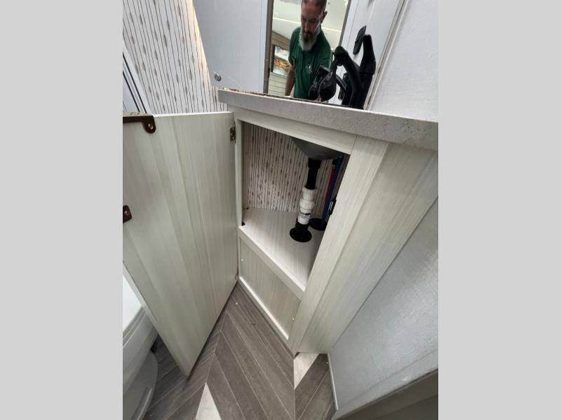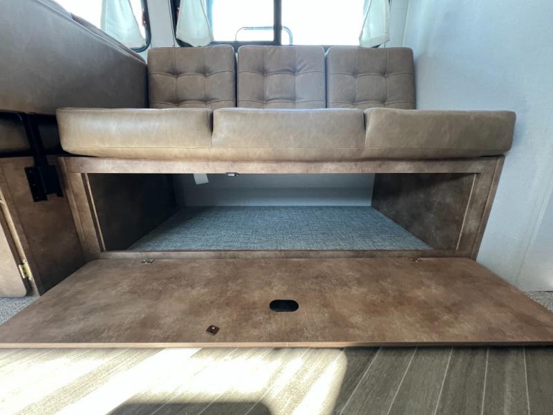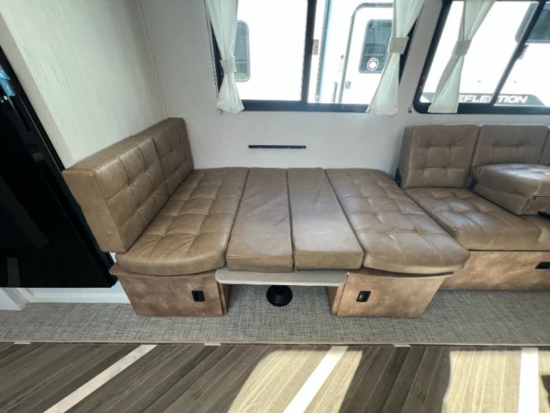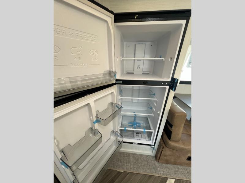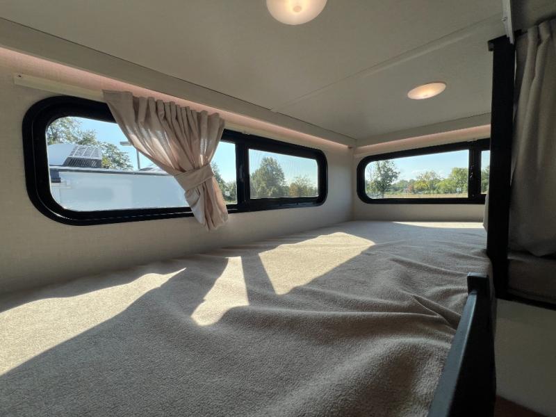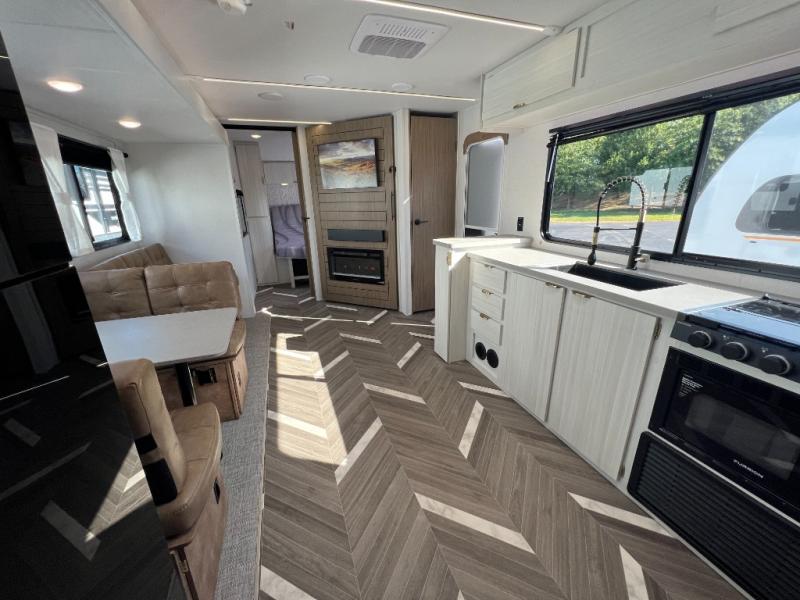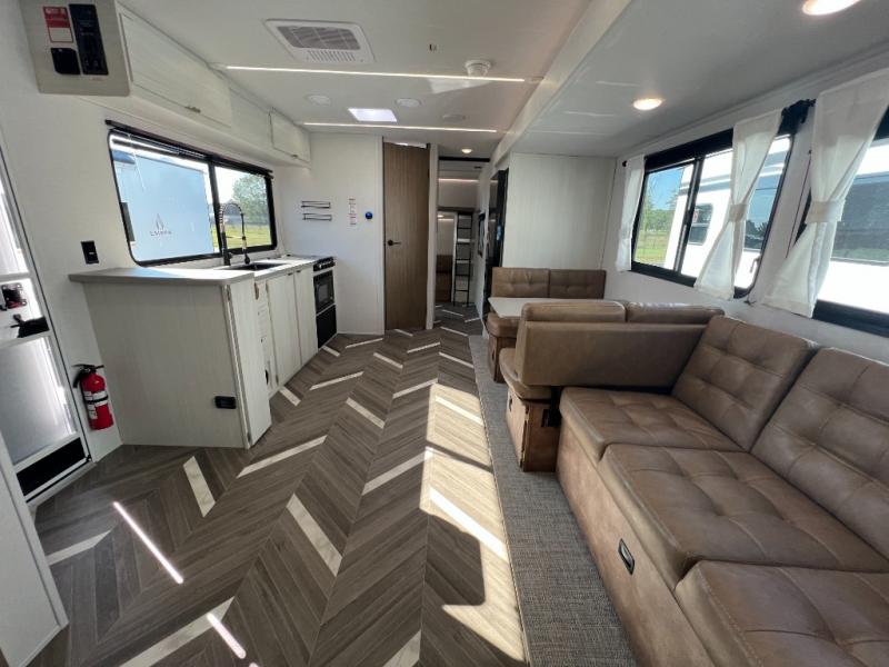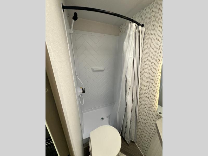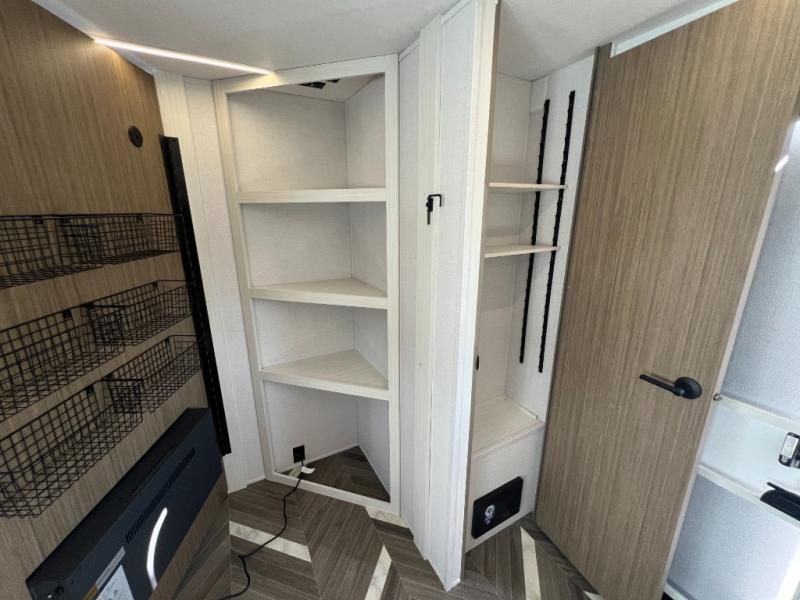 Trips to the lake just got sweeter in this travel trailer with a large slide for more space. Here, you'll find an versa lounge, and the entertainment center with a fireplace will make it feel a little more like home. A full bath with a 24' x 36" shower will let you clean up each day without having to use the camp's facilities, and the rear bunkhouse will provide sleeping space for your guests or kids. There are two bunk beds here, along with an open lounge/queen bed combo and storage space to keep this room tidy. Head up front to enjoy the private bedroom all to yourselves with a king bed and dual wardrobes for wrinkle-free clothes!