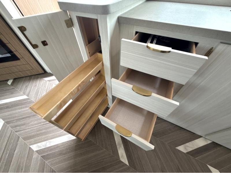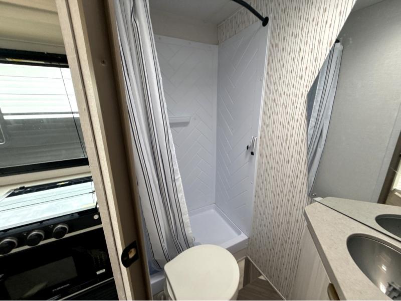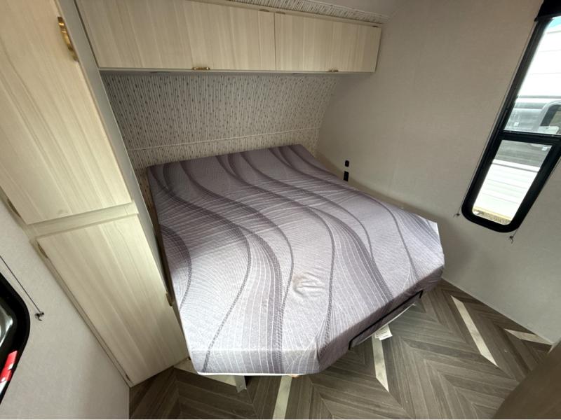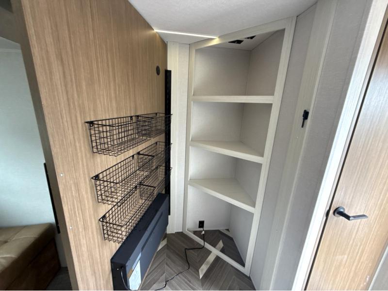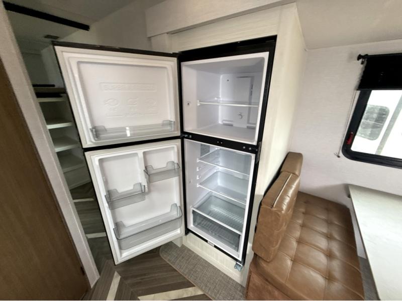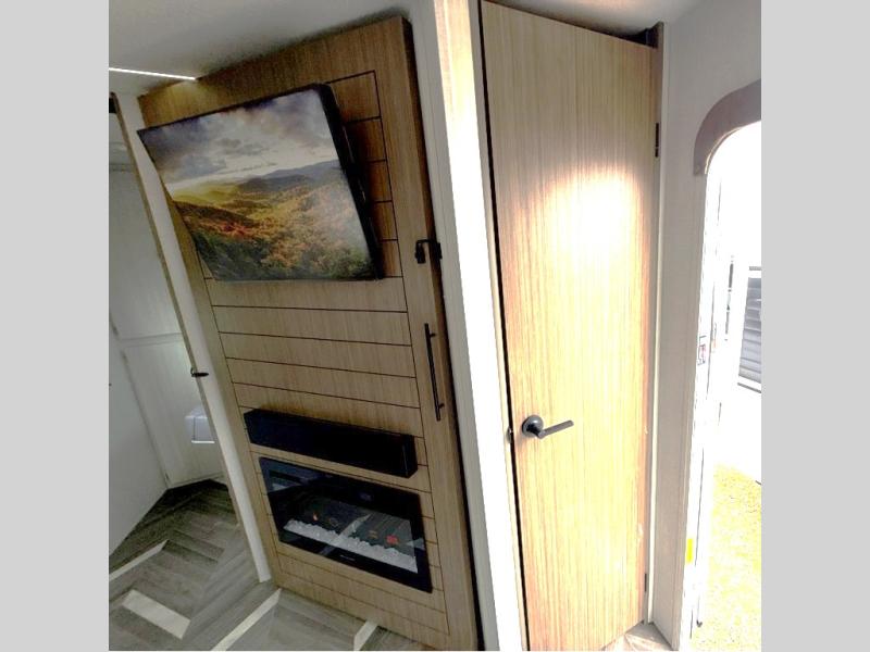 Trips to the lake just got sweeter in this travel trailer with a large slide for more space. Here, you'll find an versa lounge, and the entertainment center with a fireplace will make it feel a little more like home. A full bath with a 24' x 36" shower will let you clean up each day without having to use the camp's facilities, and the rear bunkhouse will provide sleeping space for your guests or kids. There are two bunk beds here, along with an open lounge/queen bed combo and storage space to keep this room tidy. Head up front to enjoy the private bedroom all to yourselves with a king bed and dual wardrobes for wrinkle-free clothes!