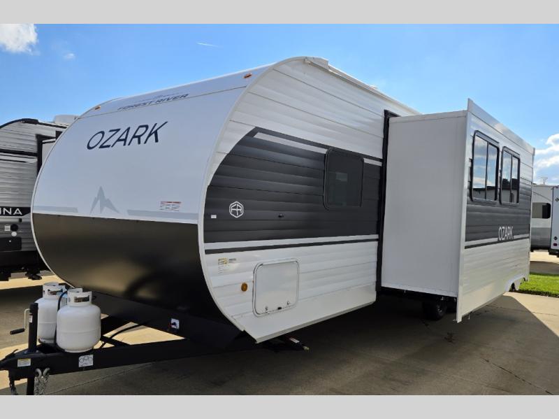 With any Ozark travel trailer or toy hauler by Forest River, you can expect lightweight towing, tons of standard features, and a great value! Each one is built with solid materials, including fiberglass insulation throughout, front diamond plate rock guard for added protection, and a powder coated I-beam frame with camber for more structural support! The stylish interior will have you feeling right at home, and you'll find plenty of storage spaces for your personal belongings, camp gear, and more. And since there are a variety of floorplans to choose from, including Limited Edition travel trailers, single axle and dual axle models, plus toy haulers, you're sure to find the Ozark that fits your needs!