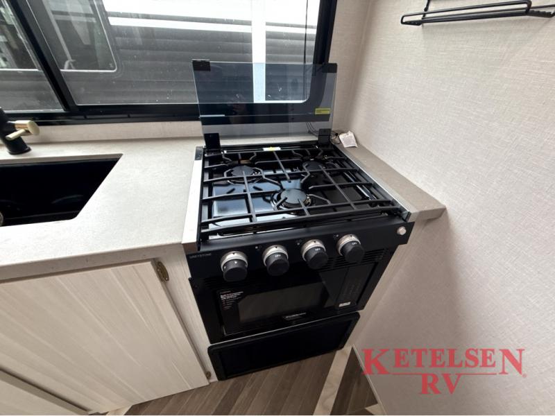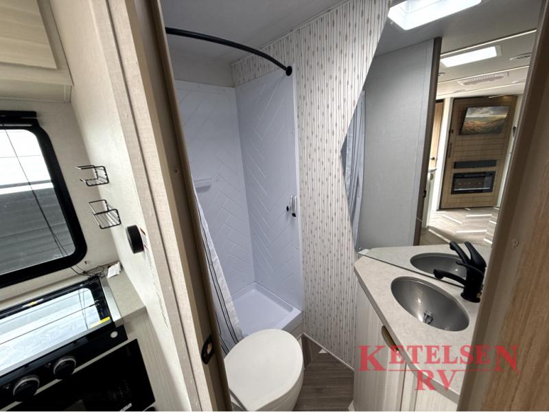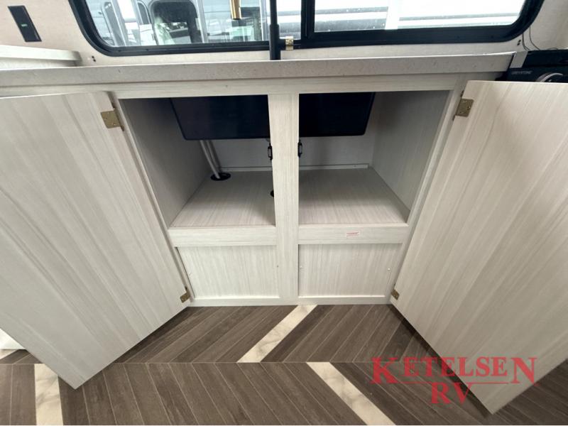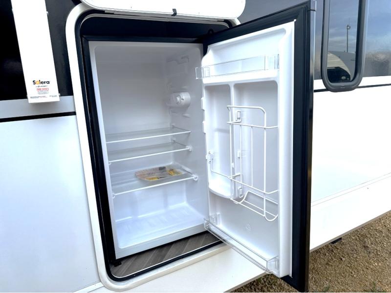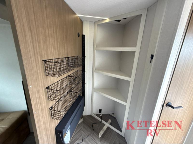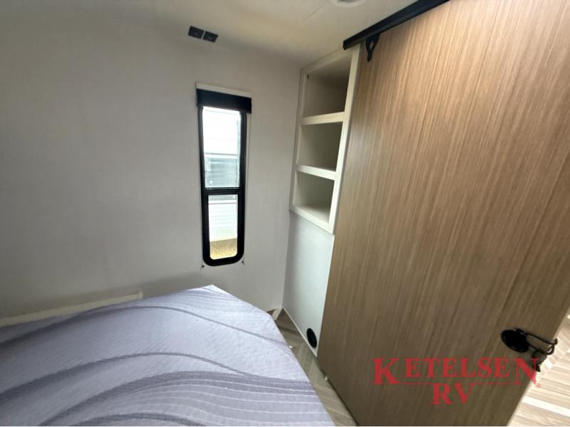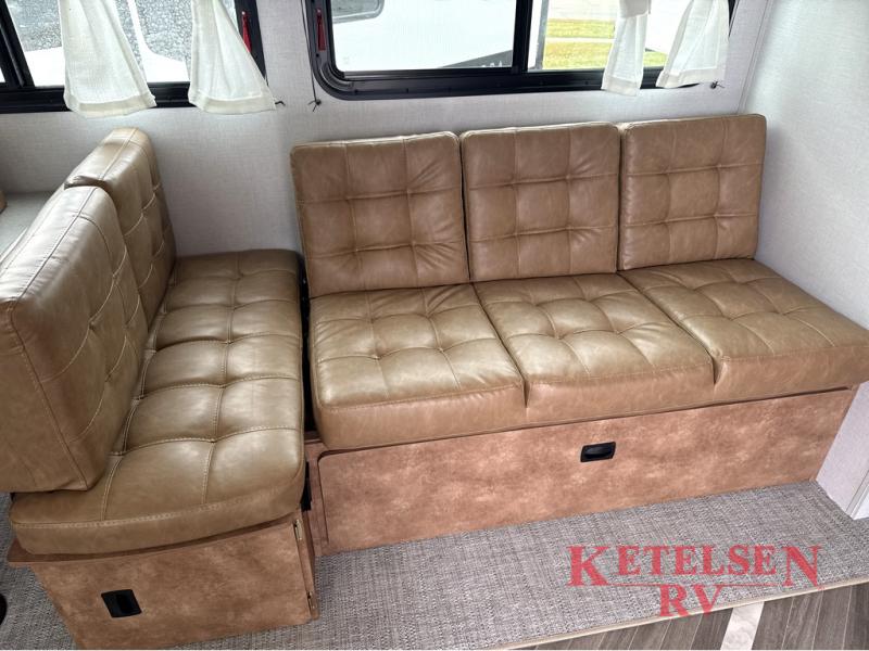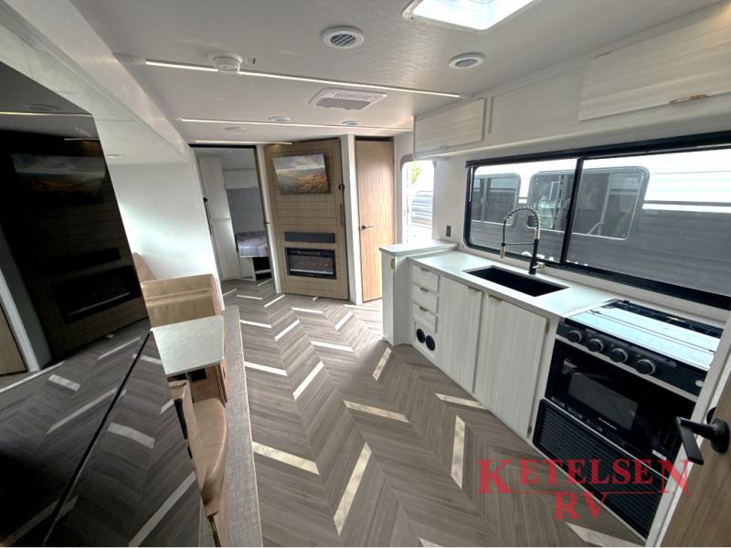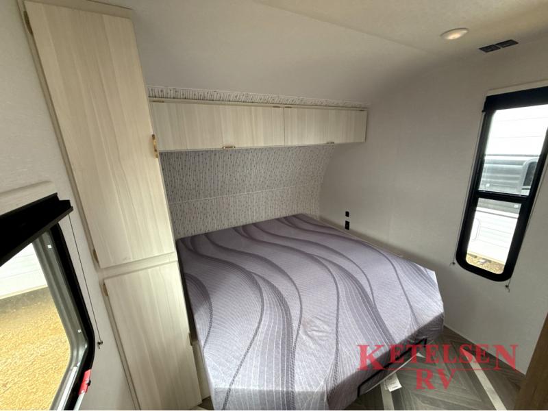 Trips to the lake just got sweeter in this travel trailer with a large slide for more space. Here, you'll find an versa lounge, and the entertainment center with a fireplace will make it feel a little more like home. A full bath with a 24' x 36" shower will let you clean up each day without having to use the camp's facilities, and the rear bunkhouse will provide sleeping space for your guests or kids. There are two bunk beds here, along with an open lounge/queen bed combo and storage space to keep this room tidy. Head up front to enjoy the private bedroom all to yourselves with a king bed and dual wardrobes for wrinkle-free clothes!