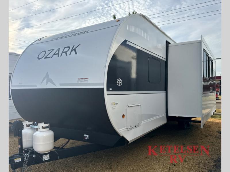 With any Ozark travel trailer or toy hauler by Forest River, you can expect lightweight towing, tons of standard features, and a great value! Each one is built with solid materials, including fiberglass insulation throughout, front diamond plate rock guard for added protection, and a powder coated I-beam frame with camber for more structural support! The stylish interior will have you feeling right at home, and you'll find plenty of storage spaces for your personal belongings, camp gear, and more. And since there are a variety of floorplans to choose from, including Limited Edition travel trailers, single axle and dual axle models, plus toy haulers, you're sure to find the Ozark that fits your needs!