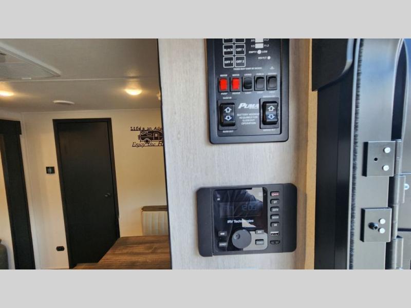 If you're looking for family-fun adventures then you need one of these Palomino Puma fifth wheels or travel trailers! They are built rugged, easy to tow, and jam packed with features. The Darco wrapped underbelly will protect your units vitals and the AlphaPly roofing membrane covers it. They also have new aluminum wheels and a powder coated steel I-beam frame. Inside, the Congoleum linoleum will be easy to keep clean, and the night roller shades will provide privacy when it's time to turn in. You'll also enjoy an electric awning with an LED light strip plus an AM/FM/Bluetooth stereo and two outside speakers to keep the party going!