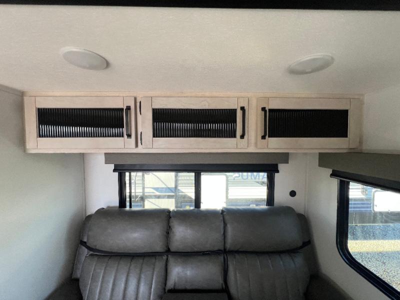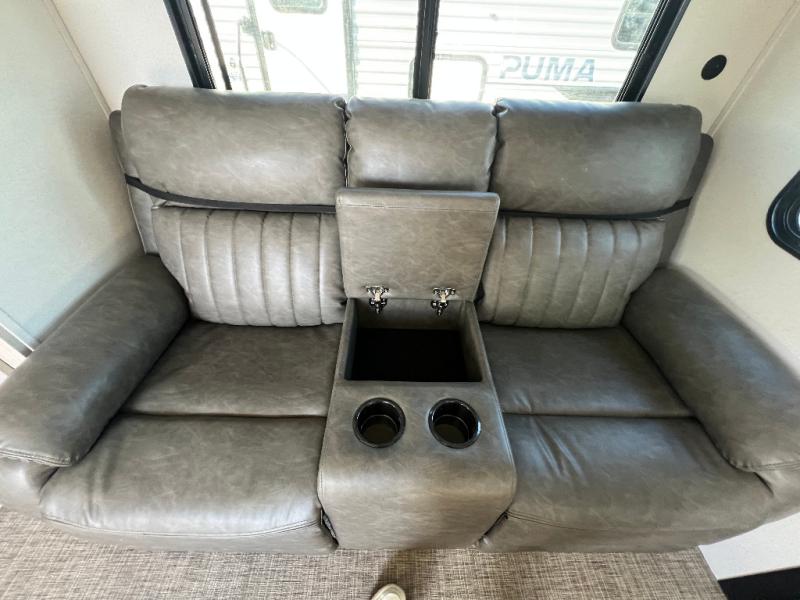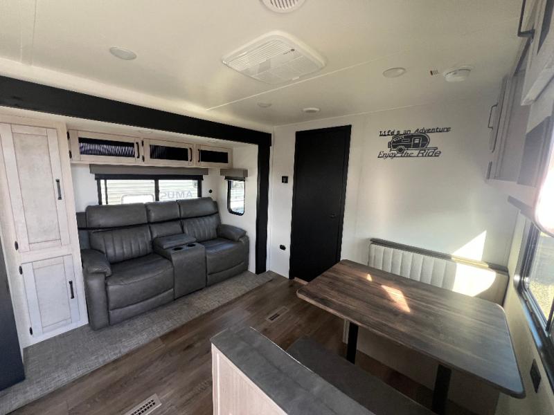 If you're looking for family-fun adventures, then you need one of these Forest River Puma travel trailers! They are built rugged, easy to tow, and jam packed with features. The Darco wrapped underbelly will help protect your unit, and the roof and side mount solar prep gives you the option to add off-grid power. Inside, the Congoleum linoleum will be easy to keep clean, and the night roller shades will provide privacy when it's time to turn in. You'll also enjoy an electric awning with an LED light strip plus an AM/FM/Bluetooth stereo and two outside speakers to keep the party going!
