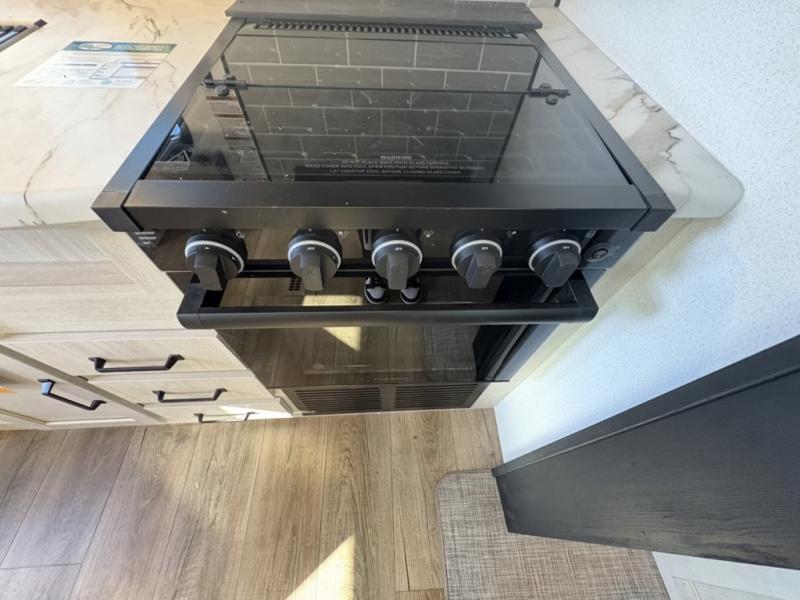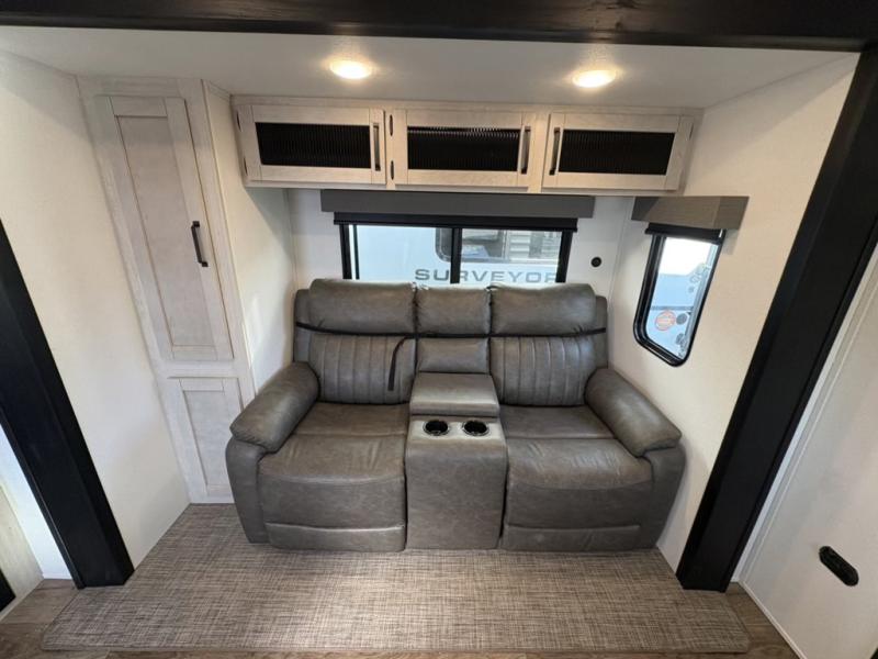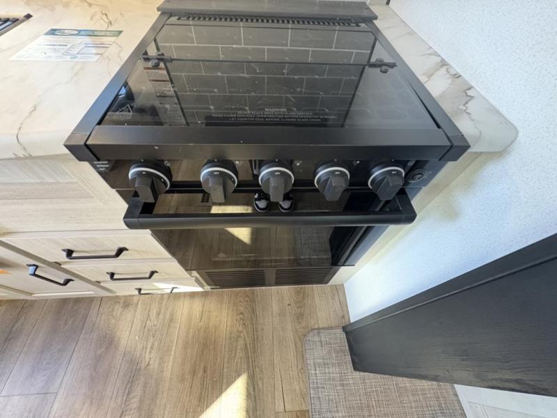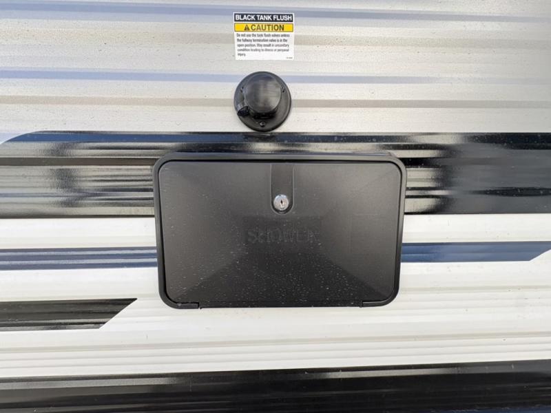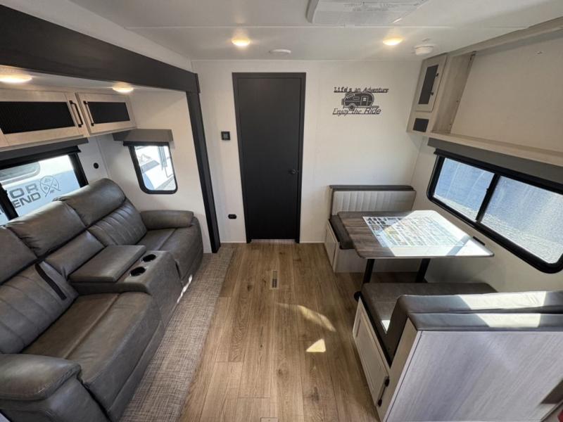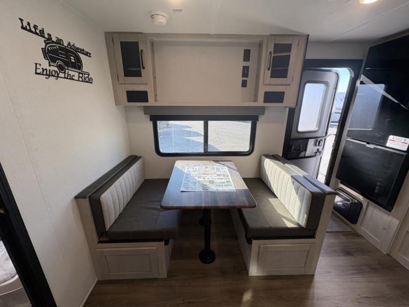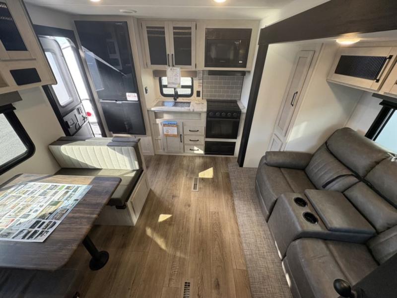This rear kitchen travel trailer will be perfect for camping trips to the lake or woods! Once you've made breakfast on the stainless-steel oven and range, you can dine at the booth dinette or take your plate outdoors to sit under the 18' electric awning. There is also a sofa slide out inside for a comfy place to relax. The walk-thru bath features a shower with a seat for added comfort, and you'll love having your own space in the front master bedroom. Here, you'll find a queen bed plus dual bedside closets to keep your things organized!
