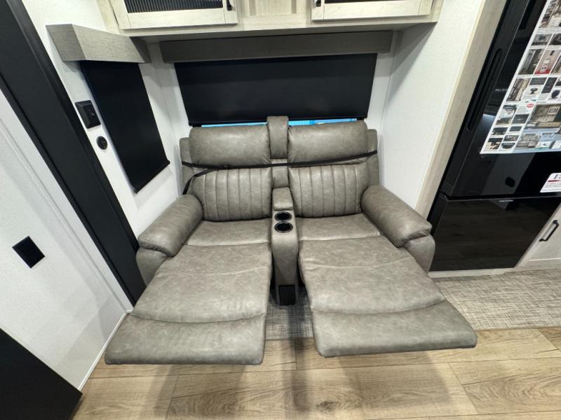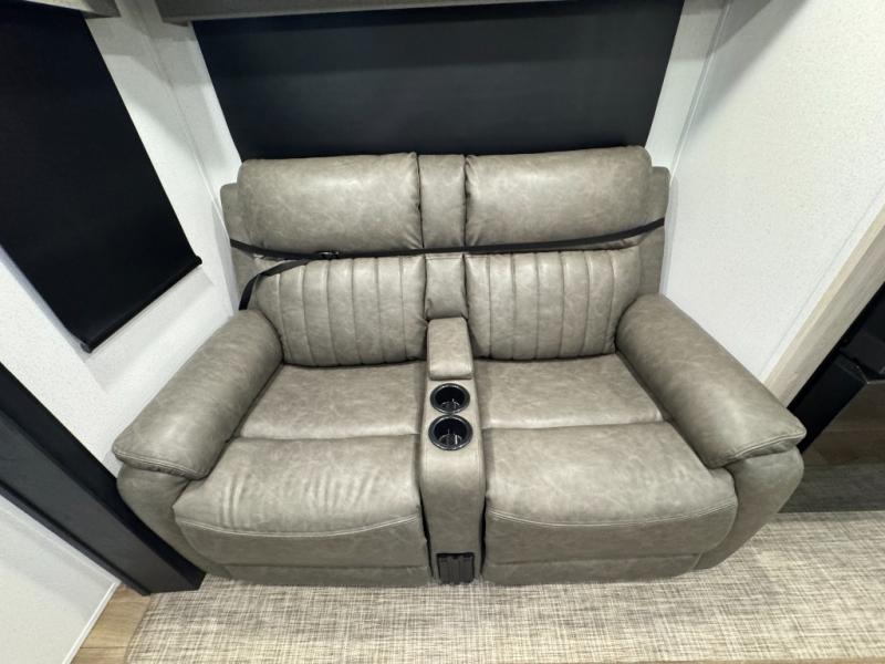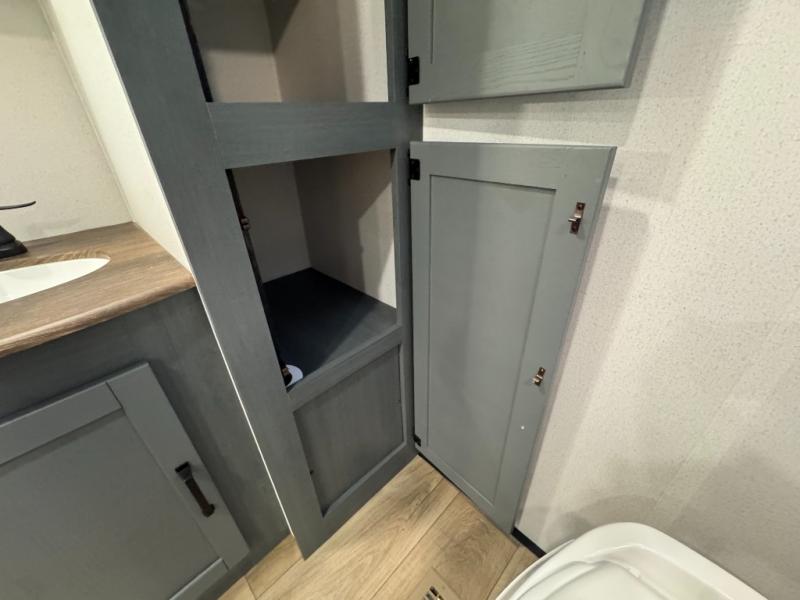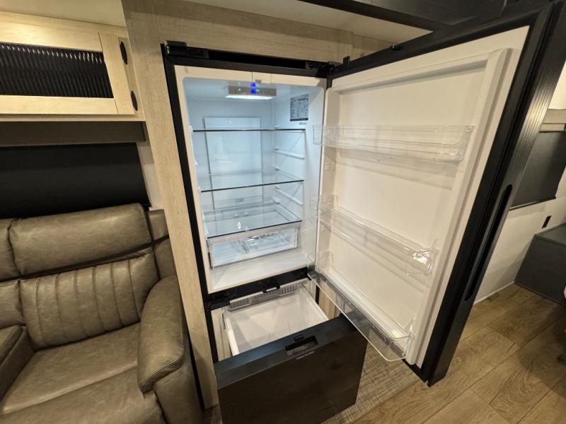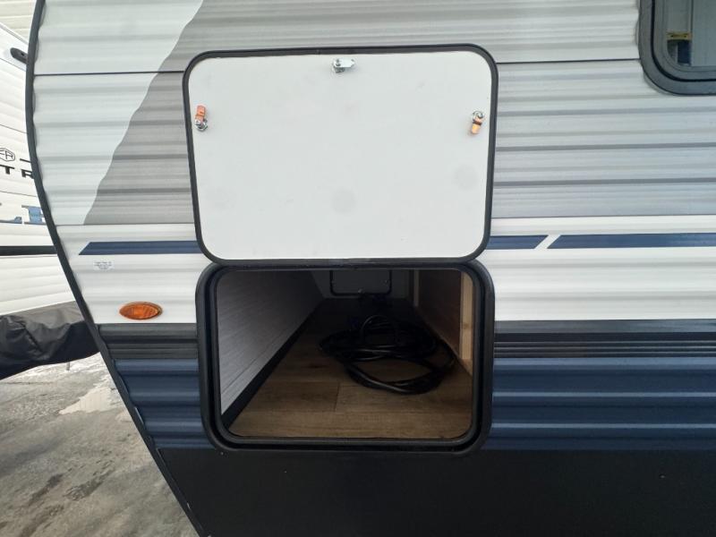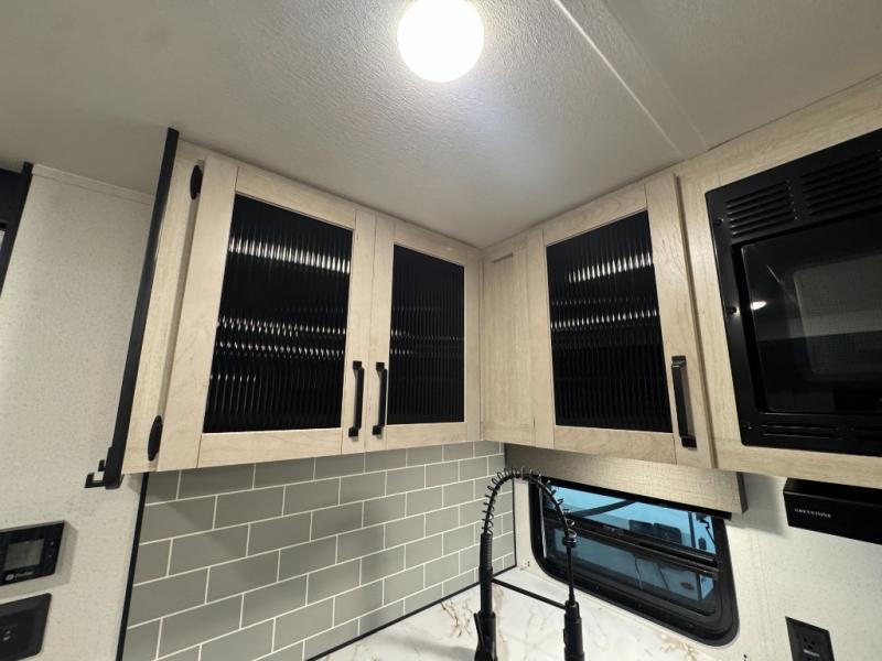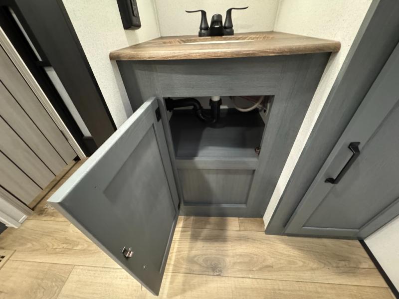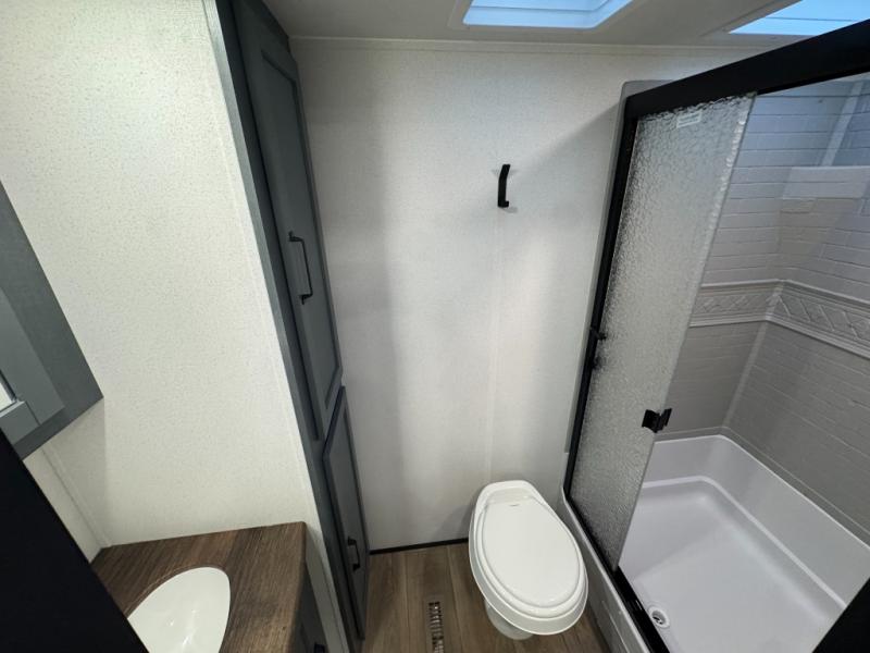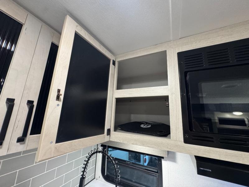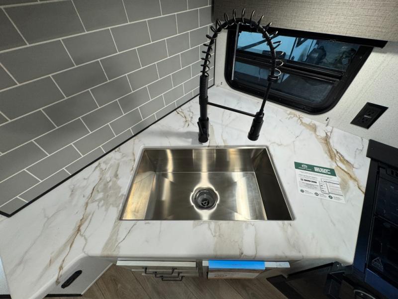 This travel trailer is inviting and spacious thanks to the large slide out, which houses the sofa, 12V refrigerator and second pantry! There is a fireplace across from the sofa for added comfort, and the full rear bath will be easy to get to. A full kitchen inside includes a stainless steel oven and range plus a stainless steel microwave to cook meals, and you can choose to add the optional micro kitchen with a griddle if you enjoy cooking outdoors! When you're ready to call it a night, the queen bed in the front private bedroom will be calling your name!