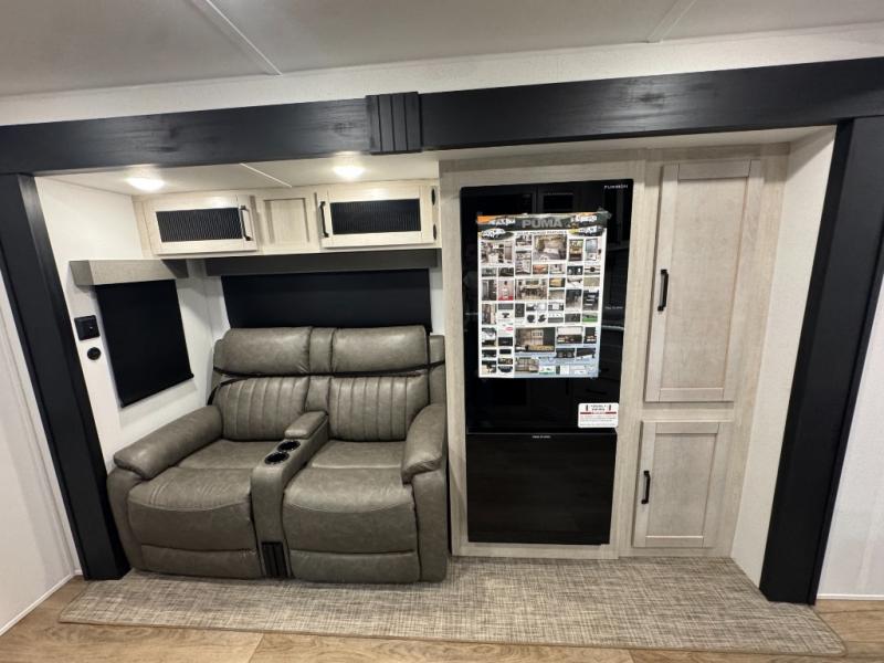 If you're looking for family-fun adventures then you need one of these Palomino Puma fifth wheels or travel trailers! They are built rugged, easy to tow, and jam packed with features. The Darco wrapped underbelly will protect your units vitals the AlphaPly roofing membrane covers it. They also have new aluminum wheels and a powder coated steel I-beam frame. Inside, the Congoleum linoleum will be easy to keep clean, and the night roller shades will provide privacy when it's time to turn in. You'll also enjoy an electric awning with an LED light strip plus an AM/FM/Bluetooth stereo and two outside speakers to keep the party going!