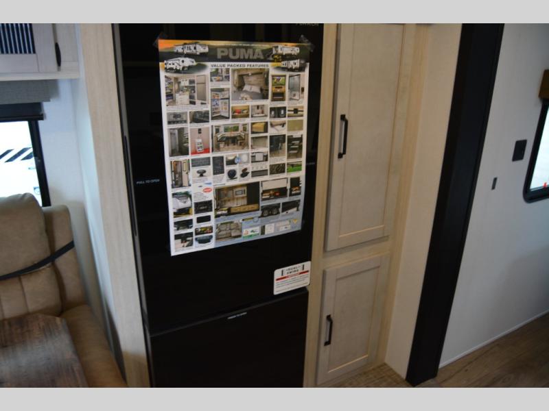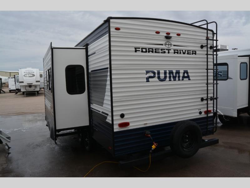 If you're looking for family-fun adventures, then you need one of these Forest River Puma travel trailers! They are built rugged, easy to tow, and jam packed with features. The Darco wrapped underbelly will help protect your unit, and the roof and side mount solar prep gives you the option to add off-grid power. Inside, the Congoleum linoleum will be easy to keep clean, and the night roller shades will provide privacy when it's time to turn in. You'll also enjoy an electric awning with an LED light strip plus an AM/FM/Bluetooth stereo and two outside speakers to keep the party going!