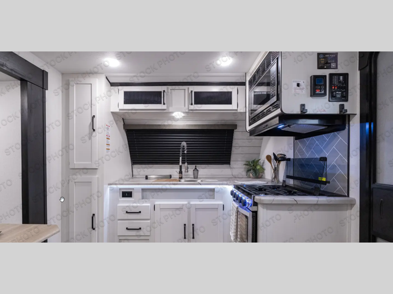 The chef will love cooking in the front kitchen of this travel trailer! They will have plenty of countertop space for meal prepping and a stainless steel oven and range to cook it all. Enjoy your meals at the sofa with table slide. After a fun day outdoors, head to the full bathroom and clean up in the 34" x 34" radius shower then change into your pajamas in the rear private bedroom and enjoy a good night's rest on the 60" x 80" queen bed! This unit also features an abundance of exterior storage for all of your outdoor camping items, along with an optional micro kitchen with a griddle.