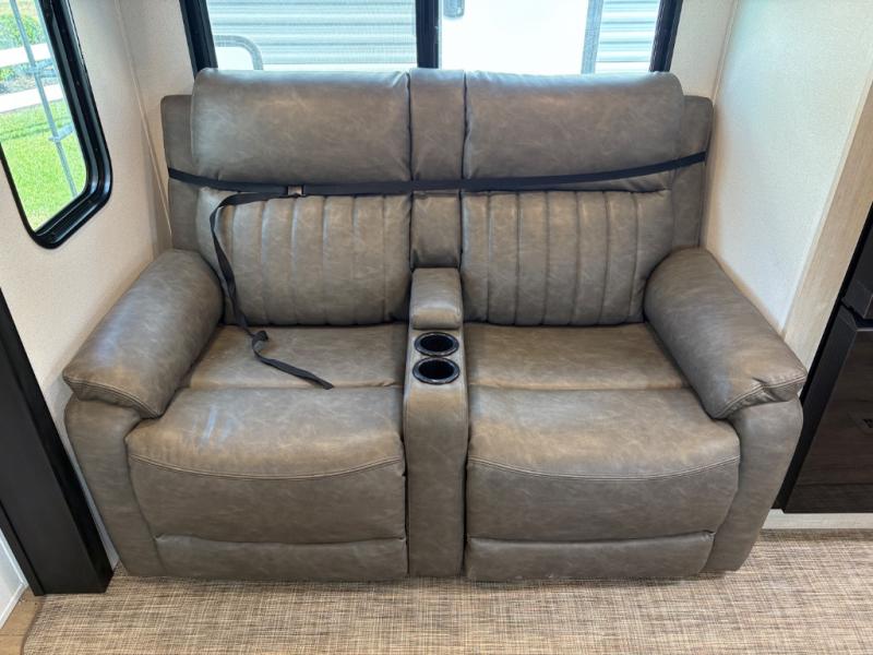 If you're looking for family-fun adventures then you need one of these Palomino Puma fifth wheels or travel trailers! They are built rugged, easy to tow, and jam packed with features. The Darco wrapped underbelly will protect your units vitals and the AlphaPly roofing membrane covers it. They also have new aluminum wheels and a powder coated steel I-beam frame. Inside, the Congoleum linoleum will be easy to keep clean, and the night roller shades will provide privacy when it's time to turn in. You'll also enjoy an electric awning with an LED light strip plus an AM/FM/Bluetooth stereo and two outside speakers to keep the party going!