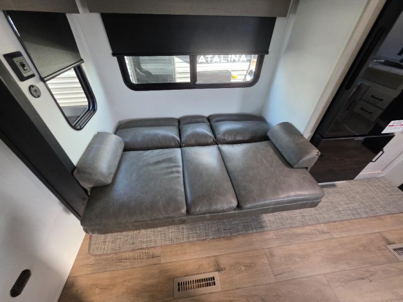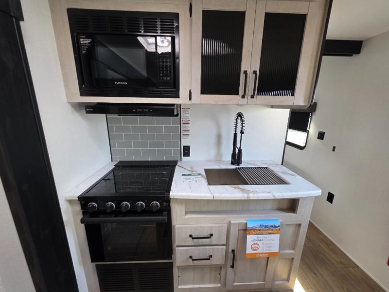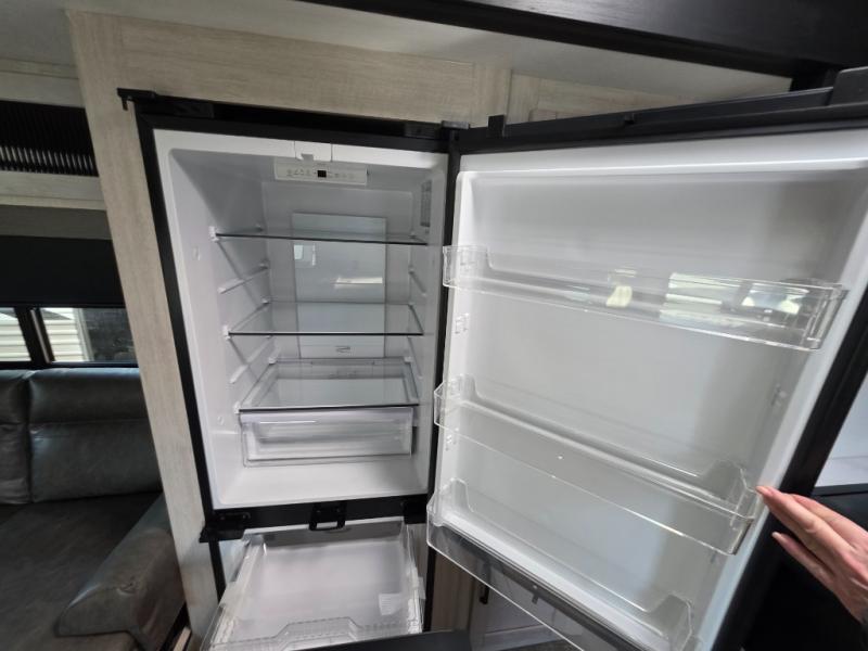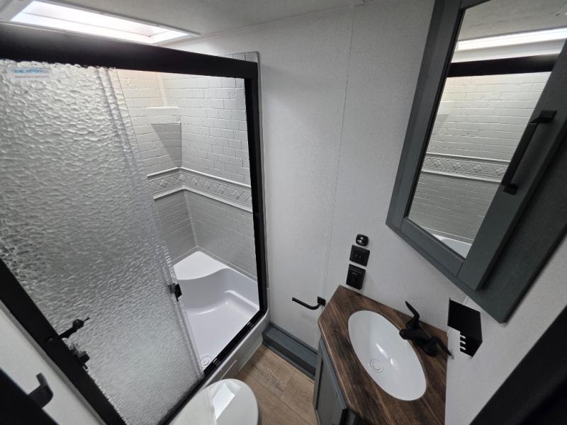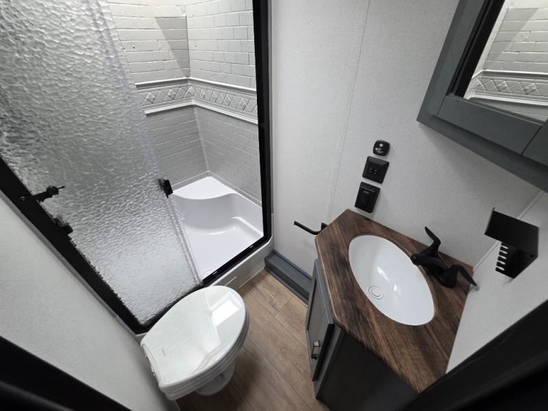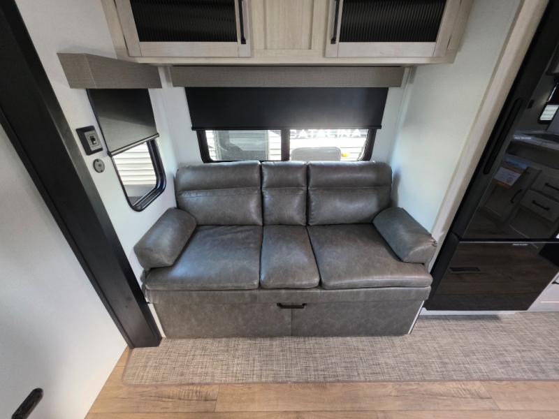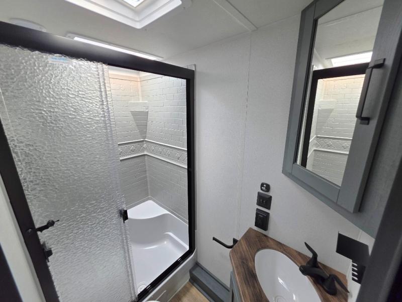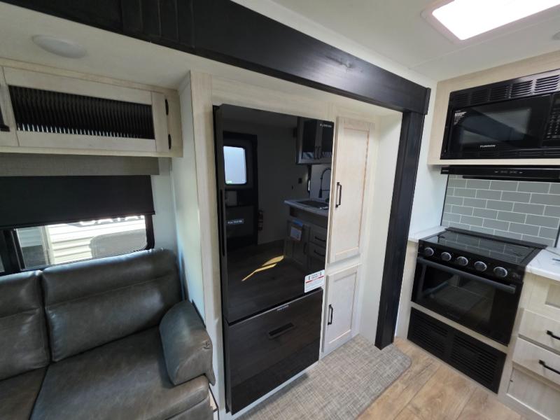 There's room for the whole family in this travel trailer! You will enjoy your own privacy with the front private bedroom which features a 60" x 80" queen bed with shirt closets on either side to hang your clothes, and a shelf above for your books or alarm clock. The kiddos can sleep on the set of 48" x 76" double-size bunk beds. They can even invite a friend or two to join in on the fun and sleep on either the sofa or booth dinette once converted. Everyone can freshen up in the rear corner bathroom with a 32" x 40" shower with a seat and keep their bellies full with the stainless-steel oven and range. You could even choose to add the optional outside mini kitchen if you enjoy cooking outdoors!