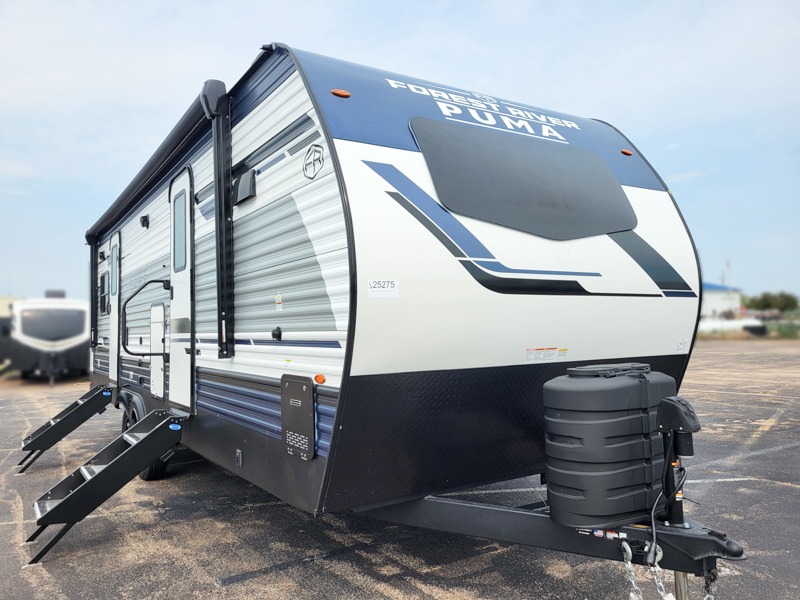 If you're looking for family-fun adventures then you need one of these Palomino Puma fifth wheels or travel trailers! They are built rugged, easy to tow, and jam packed with features. The Darco wrapped underbelly will protect your units vitals and the AlphaPly roofing membrane covers it. They also have new aluminum wheels and a powder coated steel I-beam frame. Inside, the Congoleum linoleum will be easy to keep clean, and the night roller shades will provide privacy when it's time to turn in. You'll also enjoy an electric awning with an LED light strip plus an AM/FM/Bluetooth stereo and two outside speakers to keep the party going!