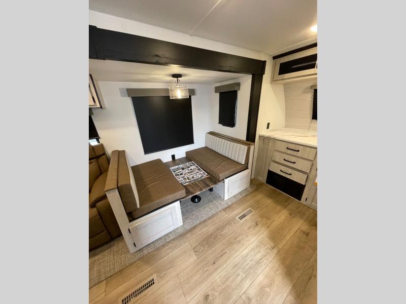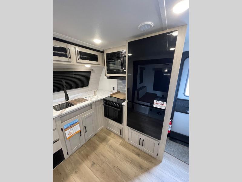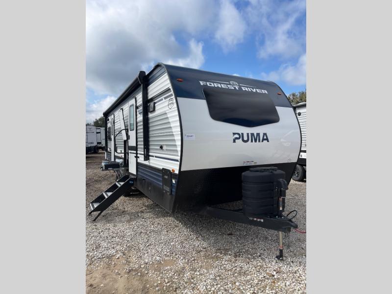 If you're looking for family-fun adventures, then you need one of these Forest River Puma travel trailers! They are built rugged, easy to tow, and jam packed with features. The Darco wrapped underbelly will help protect your unit, and the roof and side mount solar prep gives you the option to add off-grid power. Inside, the Congoleum linoleum will be easy to keep clean, and the night roller shades will provide privacy when it's time to turn in. You'll also enjoy an electric awning with an LED light strip plus an AM/FM/Bluetooth stereo and two outside speakers to keep the party going!