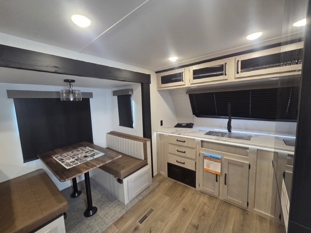 If you're looking for family-fun adventures, then you need one of these Forest River Puma travel trailers! They are built rugged, easy to tow, and jam packed with features. The Darco wrapped underbelly will help protect your unit, and the roof and side mount solar prep gives you the option to add off-grid power. Inside, the Congoleum linoleum will be easy to keep clean, and the night roller shades will provide privacy when it's time to turn in. You'll also enjoy an electric awning with an LED light strip plus an AM/FM/Bluetooth stereo and two outside speakers to keep the party going!