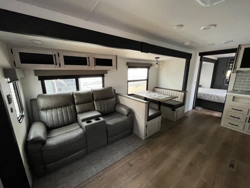 If you're looking for family-fun adventures then you need one of these Palomino Puma fifth wheels or travel trailers! They are built rugged, easy to tow, and jam packed with features. The Darco wrapped underbelly will protect your units vitals and the AlphaPly roofing membrane covers it. They also have new aluminum wheels and a powder coated steel I-beam frame. Inside, the Congoleum linoleum will be easy to keep clean, and the night roller shades will provide privacy when it's time to turn in. You'll also enjoy an electric awning with an LED light strip plus an AM/FM/Bluetooth stereo and two outside speakers to keep the party going!