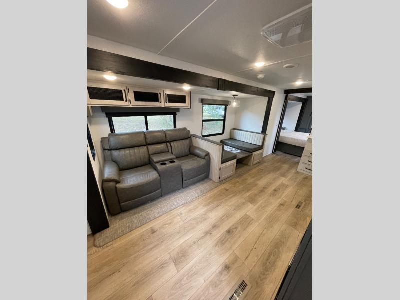 If you're looking for family-fun adventures then you need one of these Palomino Puma fifth wheels or travel trailers! They are built rugged, easy to tow, and jam packed with features. The Darco wrapped underbelly will protect your units vitals and the AlphaPly roofing membrane covers it. They also have new aluminum wheels and a powder coated steel I-beam frame. Inside, the Congoleum linoleum will be easy to keep clean, and the night roller shades will provide privacy when it's time to turn in. You'll also enjoy an electric awning with an LED light strip plus an AM/FM/Bluetooth stereo and two outside speakers to keep the party going!