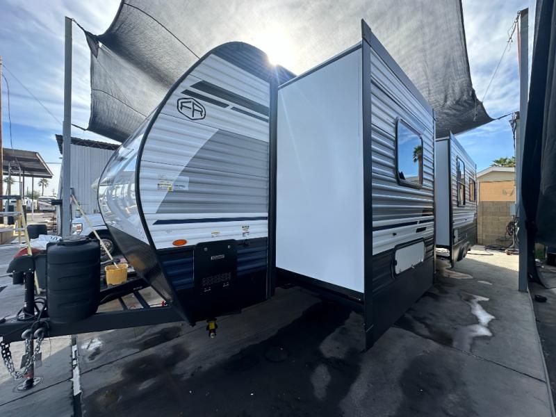 If you're looking for family-fun adventures, then you need one of these Forest River Puma travel trailers! They are built rugged, easy to tow, and jam packed with features. The Darco wrapped underbelly will help protect your unit, and the roof and side mount solar prep gives you the option to add off-grid power. Inside, the Congoleum linoleum will be easy to keep clean, and the night roller shades will provide privacy when it's time to turn in. You'll also enjoy an electric awning with an LED light strip plus an AM/FM/Bluetooth stereo and two outside speakers to keep the party going!