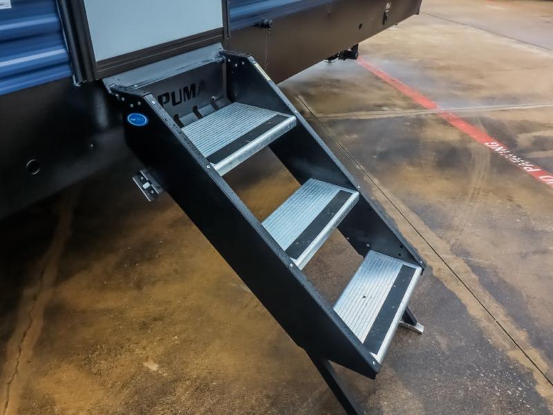 If you're looking for family-fun adventures then you need one of these Forest River Puma fifth wheels or travel trailers! They are built rugged, easy to tow, and jam packed with features. The Darco wrapped underbelly will protect your units vitals and the AlphaPly roofing membrane covers it. They also have new aluminum wheels and a powder coated steel I-beam frame. Inside, the Congoleum linoleum will be easy to keep clean, and the night roller shades will provide privacy when it's time to turn in. You'll also enjoy an electric awning with an LED light strip plus an AM/FM/Bluetooth stereo and two outside speakers to keep the party going!