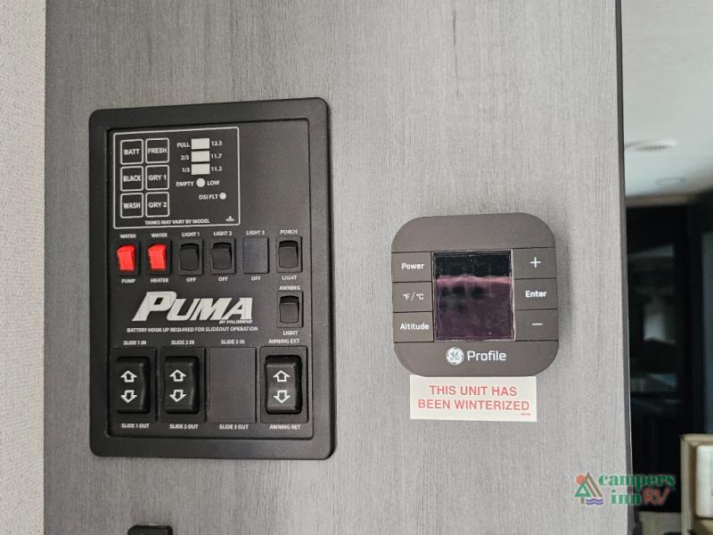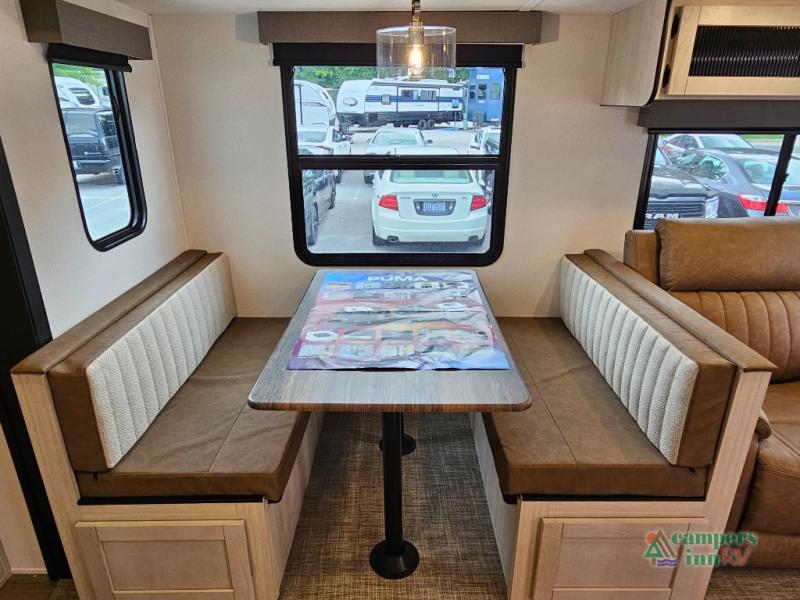 If you're looking for family-fun adventures then you need one of these Palomino Puma fifth wheels or travel trailers! They are built rugged, easy to tow, and jam packed with features. The Darco wrapped underbelly will protect your units vitals and the AlphaPly roofing membrane covers it. They also have new aluminum wheels and a powder coated steel I-beam frame. Inside, the Congoleum linoleum will be easy to keep clean, and the night roller shades will provide privacy when it's time to turn in. You'll also enjoy an electric awning with an LED light strip plus an AM/FM/Bluetooth stereo and two outside speakers to keep the party going!