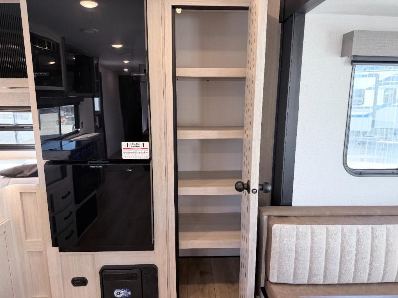 - 12V refrigerator and walk-in pantry for all your food and snacks