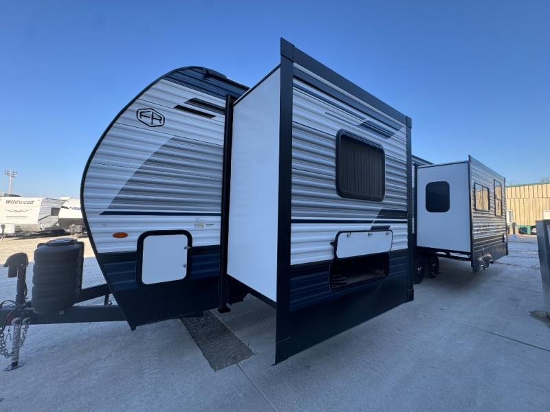 If you're looking for family-fun adventures, then you need one of these Forest River Puma travel trailers! They are built rugged, easy to tow, and jam packed with features. The Darco wrapped underbelly will help protect your unit, and the roof and side mount solar prep gives you the option to add off-grid power. Inside, the Congoleum linoleum will be easy to keep clean, and the night roller shades will provide privacy when it's time to turn in. You'll also enjoy an electric awning with an LED light strip plus an AM/FM/Bluetooth stereo and two outside speakers to keep the party going!