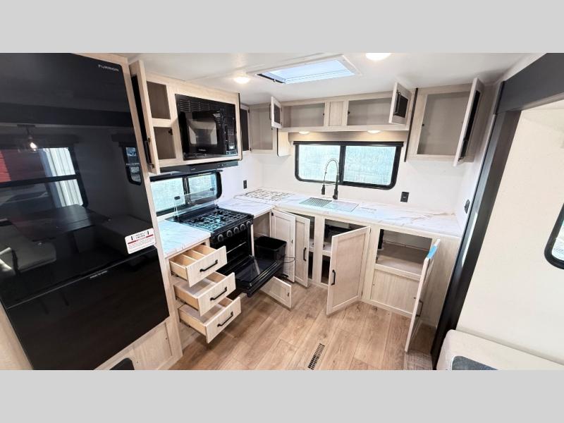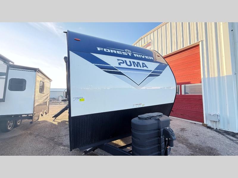 If you're looking for family-fun adventures, then you need one of these Forest River Puma travel trailers! They are built rugged, easy to tow, and jam packed with features. The Darco wrapped underbelly will help protect your unit, and the roof and side mount solar prep gives you the option to add off-grid power. Inside, the Congoleum linoleum will be easy to keep clean, and the night roller shades will provide privacy when it's time to turn in. You'll also enjoy an electric awning with an LED light strip plus an AM/FM/Bluetooth stereo and two outside speakers to keep the party going!