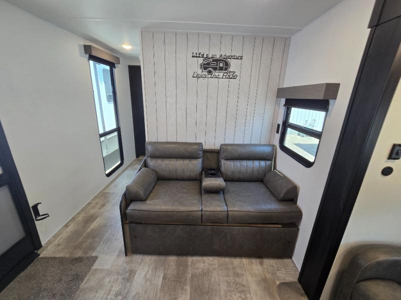 If you're looking for family-fun adventures then you need one of these Palomino Puma fifth wheels or travel trailers! They are built rugged, easy to tow, and jam packed with features. The Darco wrapped underbelly will protect your units vitals and the AlphaPly roofing membrane covers it. They also have new aluminum wheels and a powder coated steel I-beam frame. Inside, the Congoleum linoleum will be easy to keep clean, and the night roller shades will provide privacy when it's time to turn in. You'll also enjoy an electric awning with an LED light strip plus an AM/FM/Bluetooth stereo and two outside speakers to keep the party going!