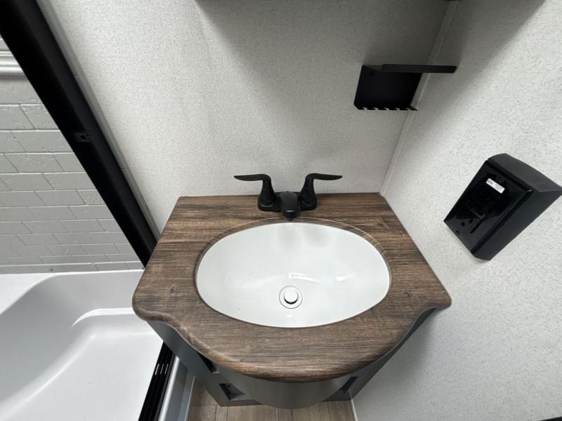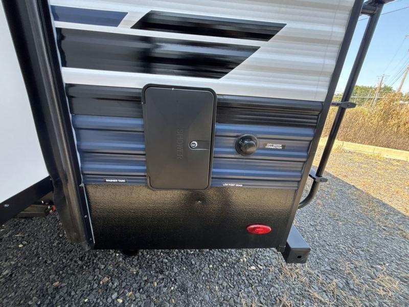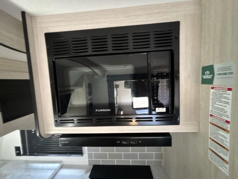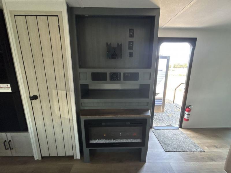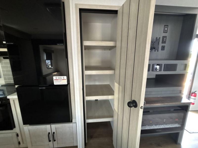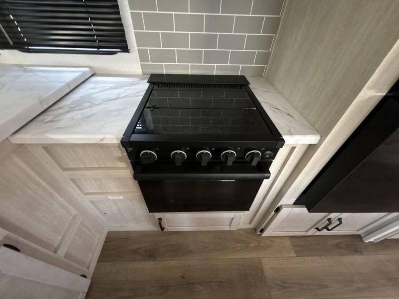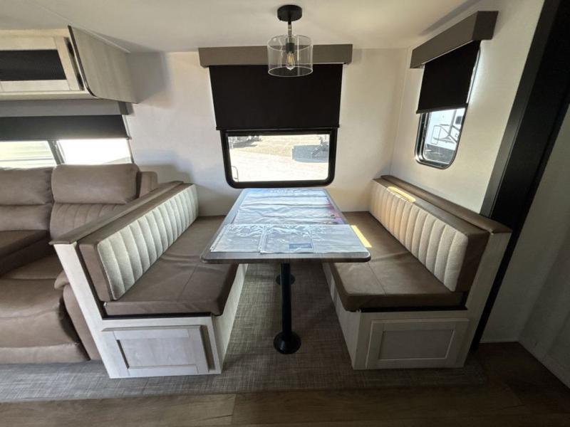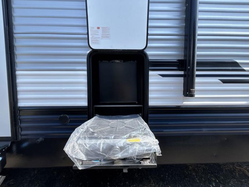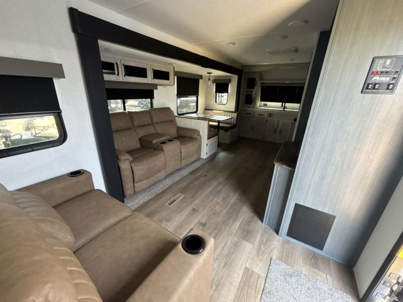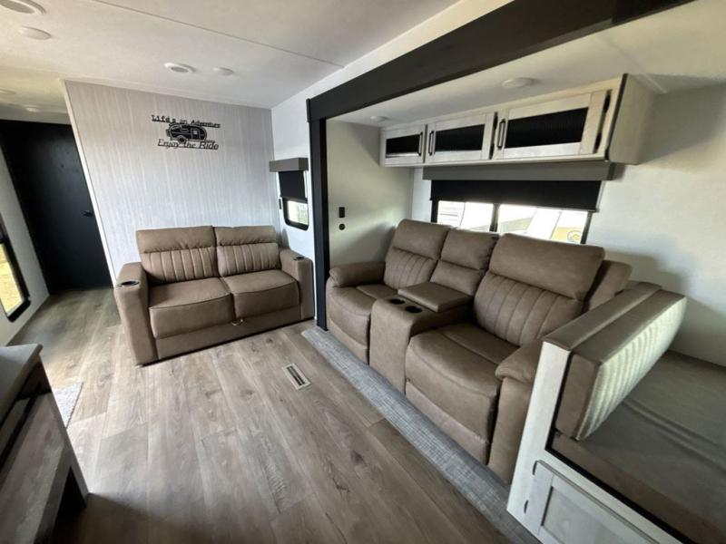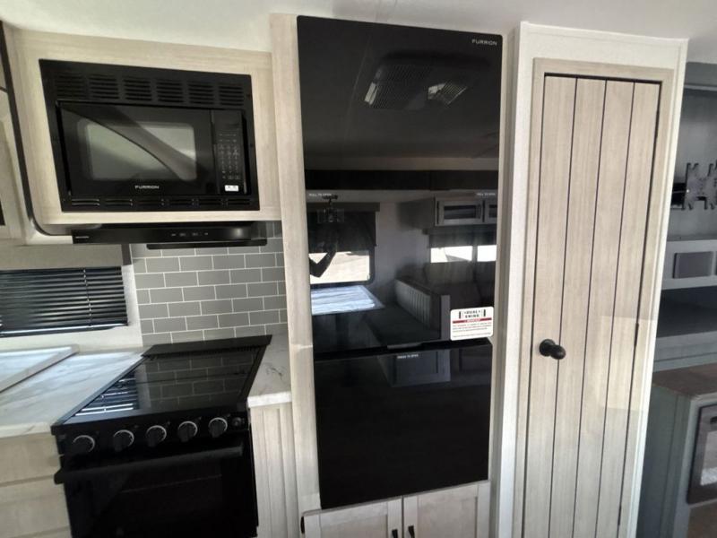 Experience a home away from home with this travel trailer! The front kitchen has everything you will need to prepare your best meals and you can enjoy them at the booth dinette. The rear private bedroom has a 72" x 80" king bed slide across from a dresser, a wardrobe, and a closet with washer and dryer prep. Freshen up in the full bathroom with the 32" x 40" shower and then enjoy a cup of coffee relaxing in one of the two recliners or on the sofa! Choose the optional outside micro kitchen with a griddle for even more convenience!