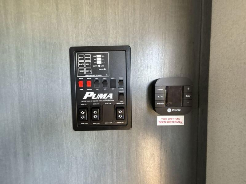 If you're looking for family-fun adventures then you need one of these Palomino Puma fifth wheels or travel trailers! They are built rugged, easy to tow, and jam packed with features. The Darco wrapped underbelly will protect your units vitals and the AlphaPly roofing membrane covers it. They also have new aluminum wheels and a powder coated steel I-beam frame. Inside, the Congoleum linoleum will be easy to keep clean, and the night roller shades will provide privacy when it's time to turn in. You'll also enjoy an electric awning with an LED light strip plus an AM/FM/Bluetooth stereo and two outside speakers to keep the party going!