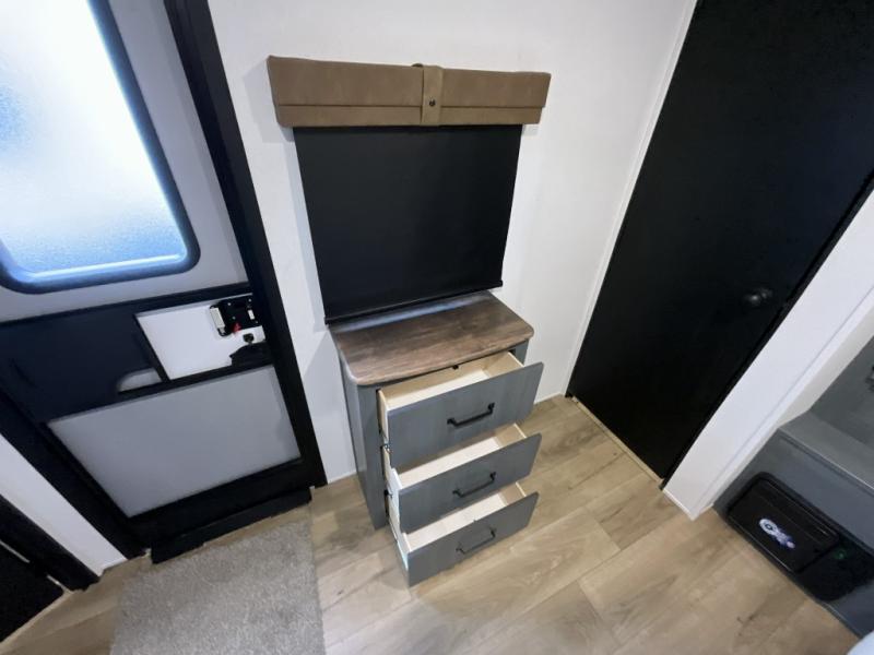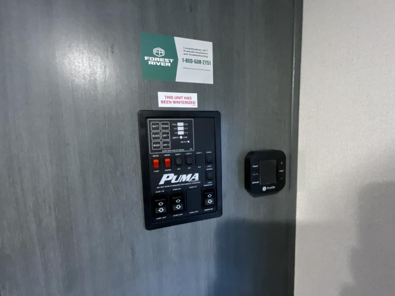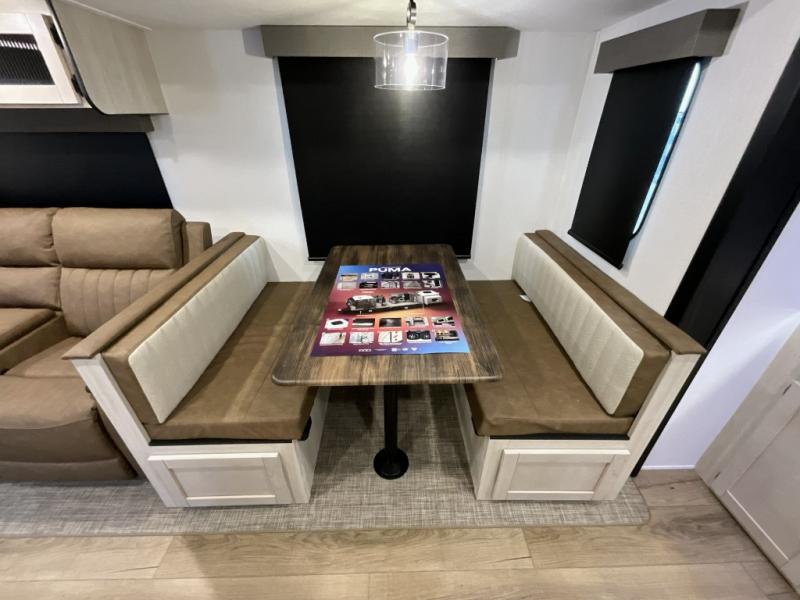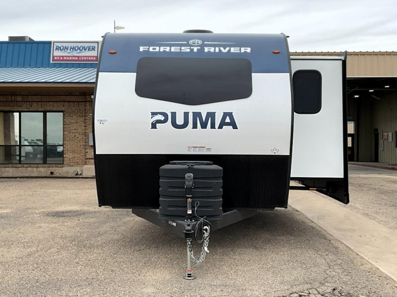 If you're looking for family-fun adventures, then you need one of these Forest River Puma travel trailers! They are built rugged, easy to tow, and jam packed with features. The Darco wrapped underbelly will help protect your unit, and the roof and side mount solar prep gives you the option to add off-grid power. Inside, the Congoleum linoleum will be easy to keep clean, and the night roller shades will provide privacy when it's time to turn in. You'll also enjoy an electric awning with an LED light strip plus an AM/FM/Bluetooth stereo and two outside speakers to keep the party going!