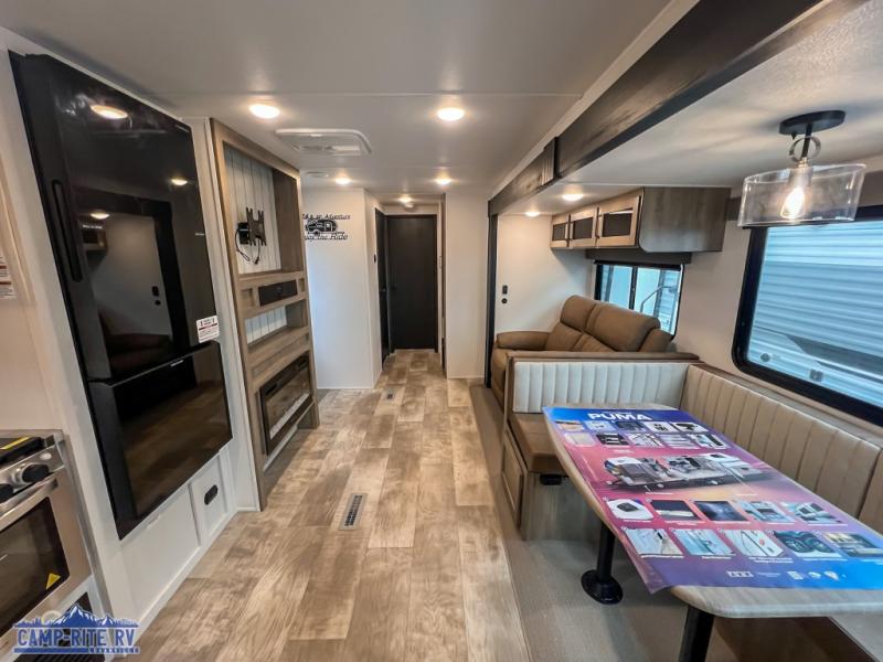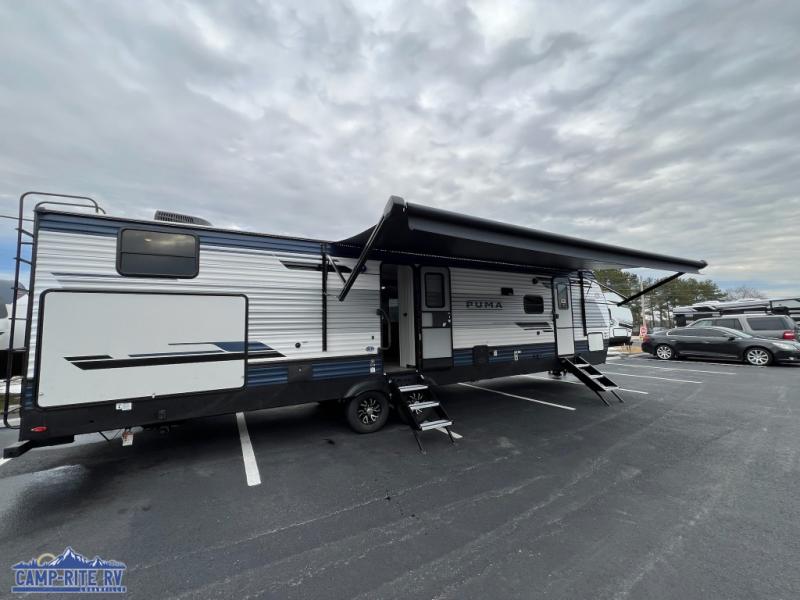 If you're looking for family-fun adventures then you need one of these Palomino Puma fifth wheels or travel trailers! They are built rugged, easy to tow, and jam packed with features. The Darco wrapped underbelly will protect your units vitals and the AlphaPly roofing membrane covers it. They also have new aluminum wheels and a powder coated steel I-beam frame. Inside, the Congoleum linoleum will be easy to keep clean, and the night roller shades will provide privacy when it's time to turn in. You'll also enjoy an electric awning with an LED light strip plus an AM/FM/Bluetooth stereo and two outside speakers to keep the party going!