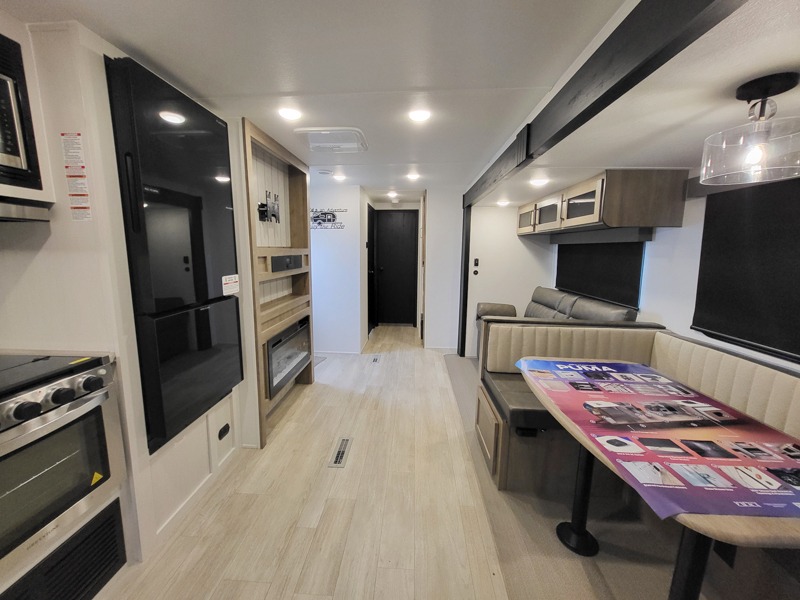 If you're looking for family-fun adventures then you need one of these Palomino Puma fifth wheels or travel trailers! They are built rugged, easy to tow, and jam packed with features. The Darco wrapped underbelly will protect your units vitals and the AlphaPly roofing membrane covers it. They also have new aluminum wheels and a powder coated steel I-beam frame. Inside, the Congoleum linoleum will be easy to keep clean, and the night roller shades will provide privacy when it's time to turn in. You'll also enjoy an electric awning with an LED light strip plus an AM/FM/Bluetooth stereo and two outside speakers to keep the party going!