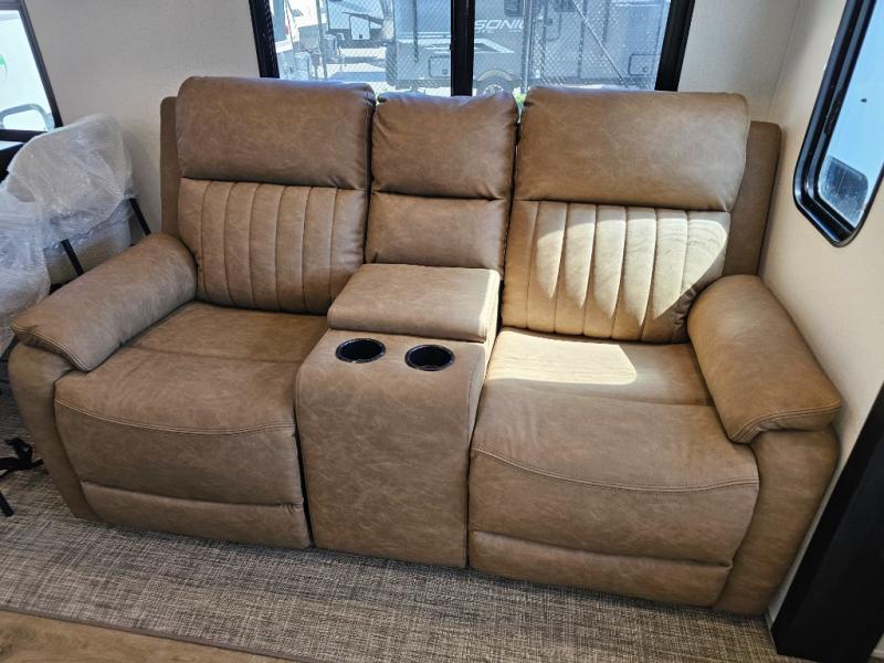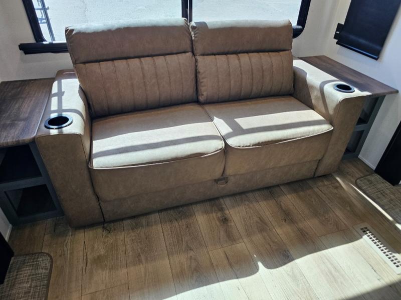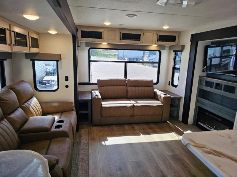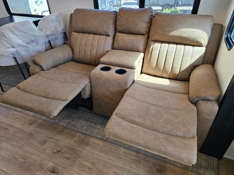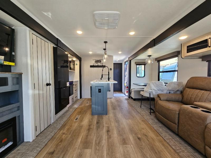 This model is perfect for couples or small families who enjoy camping with extra comfort and space. With a front queen suite, spacious kitchen with island, walk-in pantry, and a cozy living room with recliners and fireplace, the Puma 31RLQS combines residential features with rugged construction for a reliable and stylish travel experience.