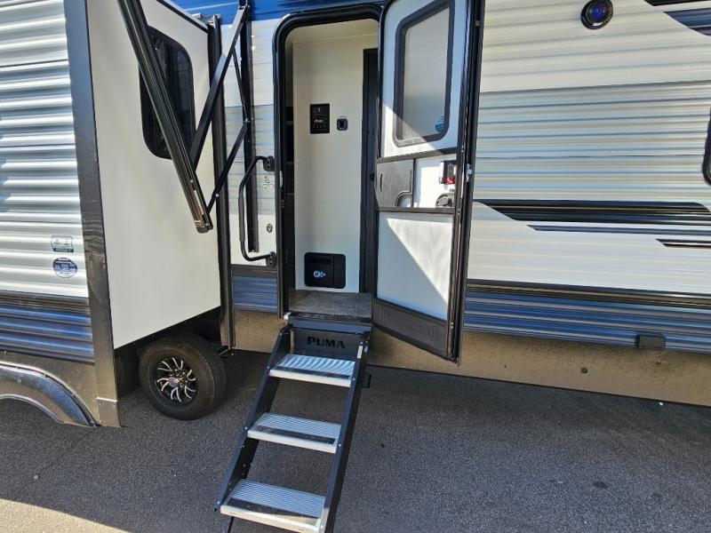 The Puma 31RLQS is designed for campers who love open layouts, premium amenities, and the feeling of home on the road. With its roomy kitchen, residential-style seating, and front bedroom with washer/dryer prep, this travel trailer offers comfort, functionality, and durability for long weekends or extended trips.