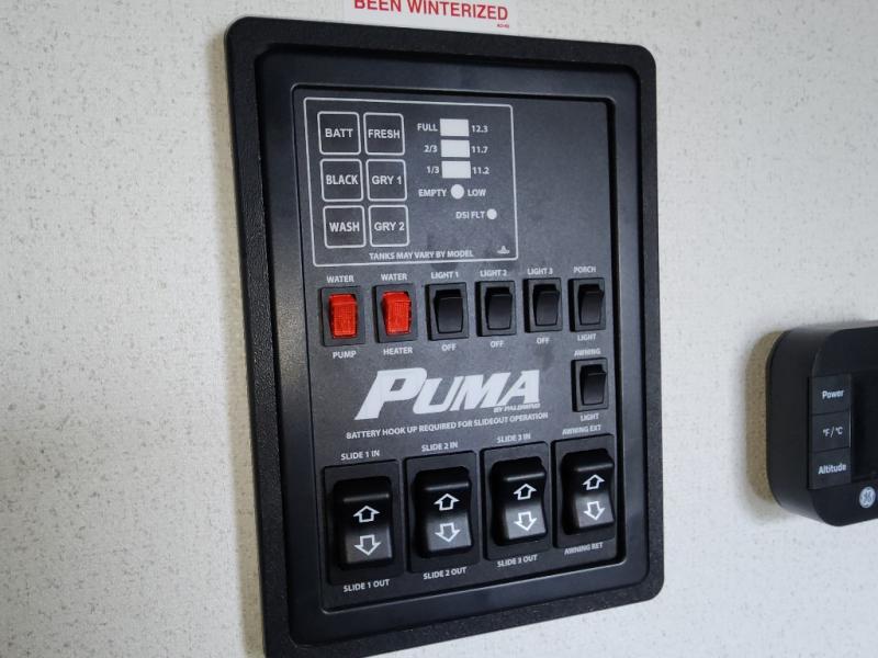 If you're looking for family-fun adventures, then you need one of these Forest River Puma travel trailers! They are built rugged, easy to tow, and jam packed with features. The Darco wrapped underbelly will help protect your unit, and the roof and side mount solar prep gives you the option to add off-grid power. Inside, the Congoleum linoleum will be easy to keep clean, and the night roller shades will provide privacy when it's time to turn in. You'll also enjoy an electric awning with an LED light strip plus an AM/FM/Bluetooth stereo and two outside speakers to keep the party going!