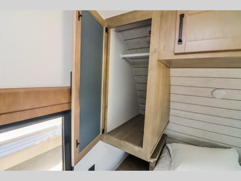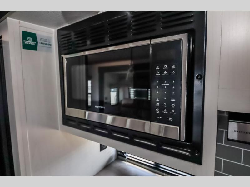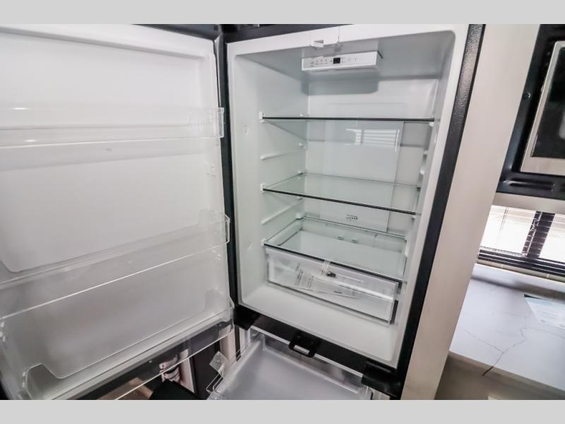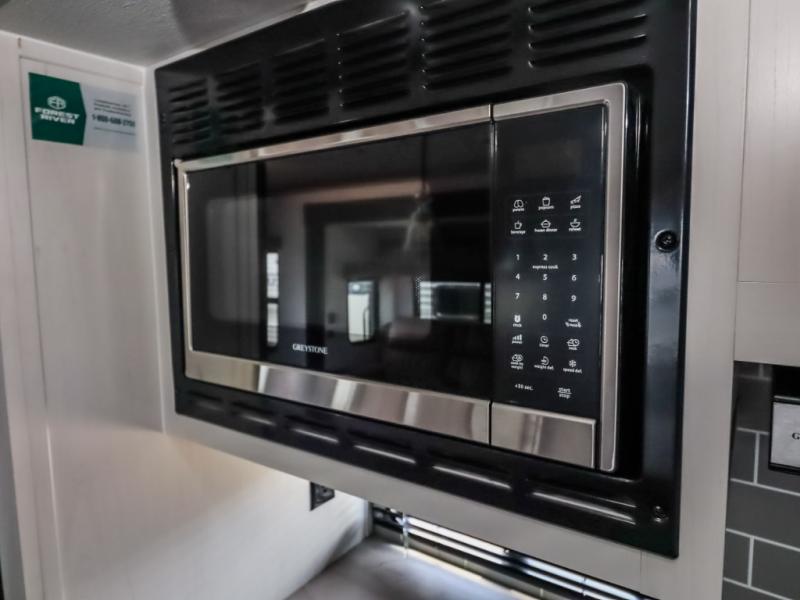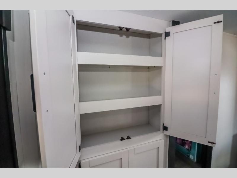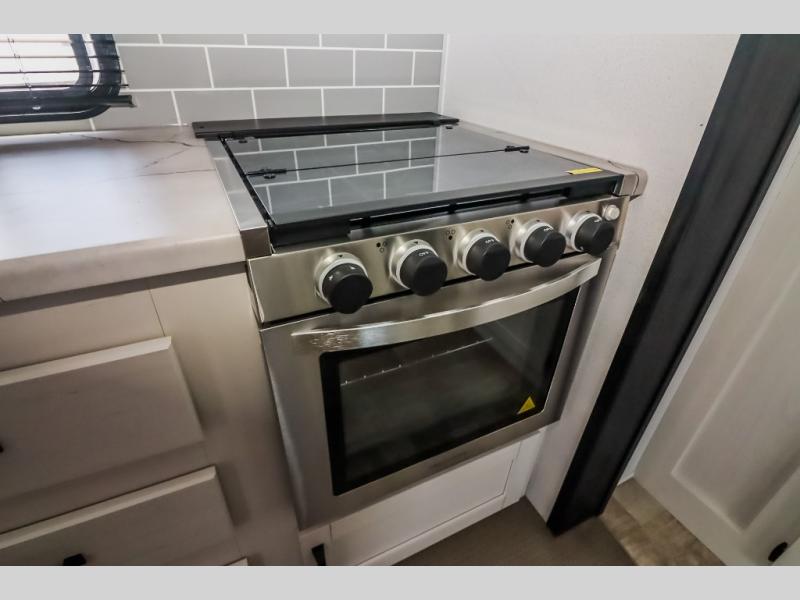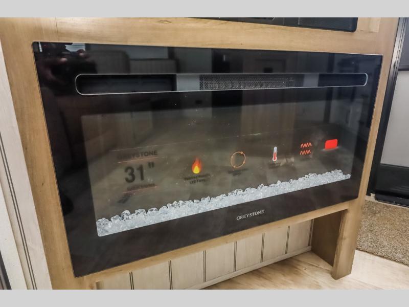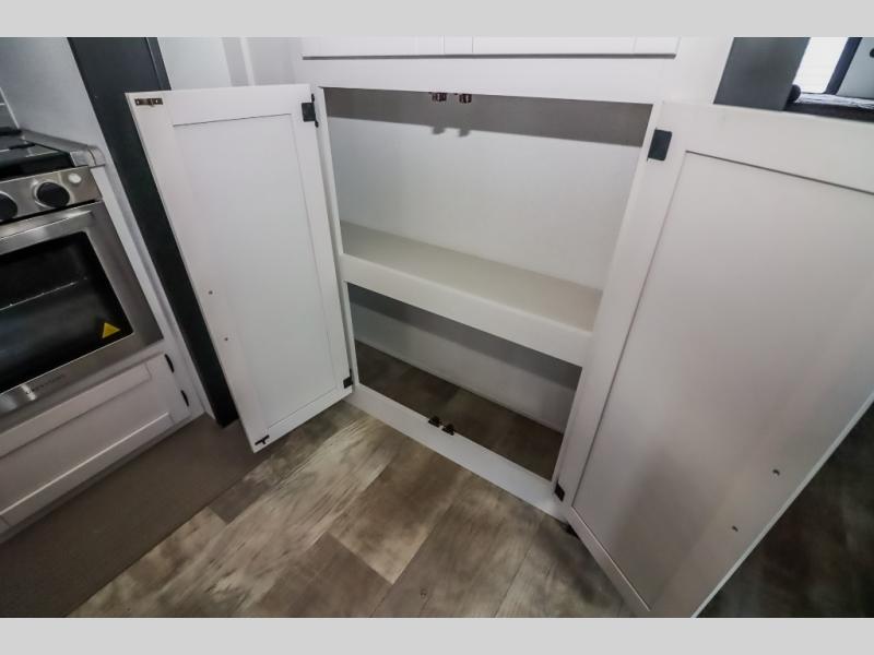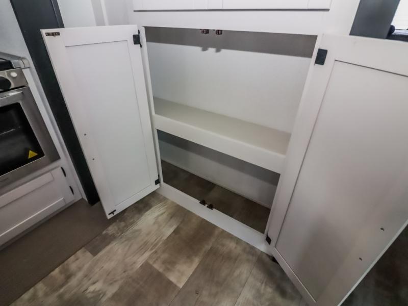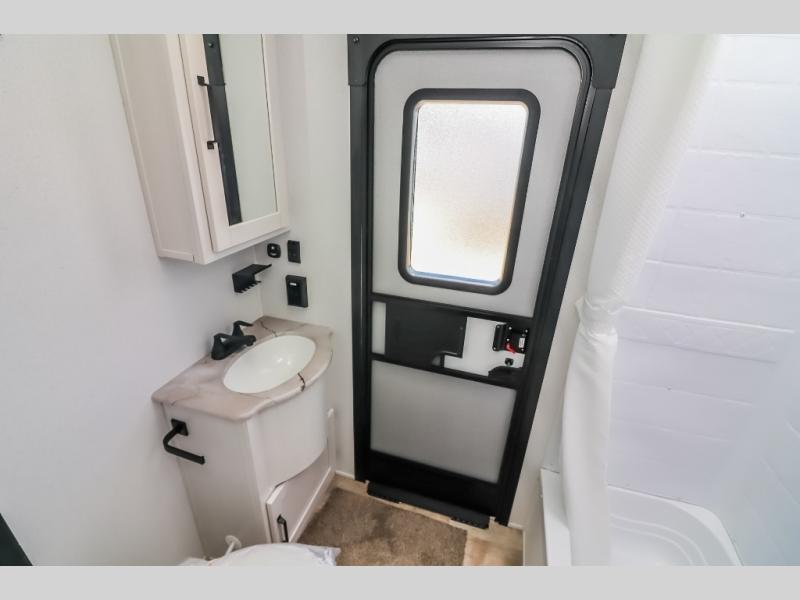 With two full bathrooms, it's a clean decision to take this travel trailer on your next family vacation! Start each morning feeling recharged after sleeping on the queen bed in the front private bedroom or in the rear private bunkhouse with an angled top bunk above a 32" x 69" double bunk bed and a 32" x 69" bunk above a 68" sofa slide. The bunkhouse also has a full bathroom with a 24" x 40" tub and one of the dual entry doors to the unit. You can relax on the sofa while enjoying the entertainment center and eat your meals prepared with the kitchen island at the booth dinette.