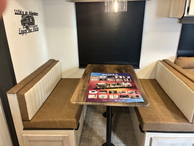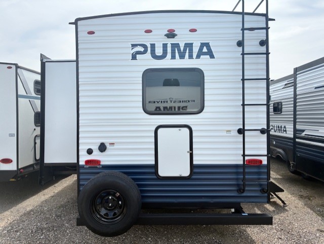 If you're looking for family-fun adventures, then you need one of these Forest River Puma travel trailers! They are built rugged, easy to tow, and jam packed with features. The Darco wrapped underbelly will help protect your unit, and the roof and side mount solar prep gives you the option to add off-grid power. Inside, the Congoleum linoleum will be easy to keep clean, and the night roller shades will provide privacy when it's time to turn in. You'll also enjoy an electric awning with an LED light strip plus an AM/FM/Bluetooth stereo and two outside speakers to keep the party going!