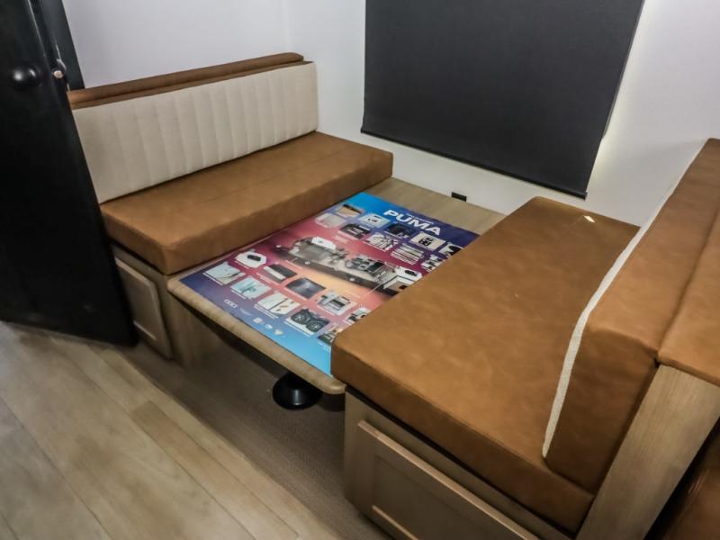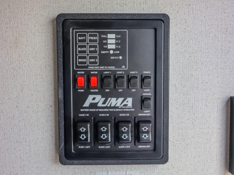 If you're looking for family-fun adventures then you need one of these Palomino Puma fifth wheels or travel trailers! They are built rugged, easy to tow, and jam packed with features. The Darco wrapped underbelly will protect your units vitals and the AlphaPly roofing membrane covers it. They also have new aluminum wheels and a powder coated steel I-beam frame. Inside, the Congoleum linoleum will be easy to keep clean, and the night roller shades will provide privacy when it's time to turn in. You'll also enjoy an electric awning with an LED light strip plus an AM/FM/Bluetooth stereo and two outside speakers to keep the party going!