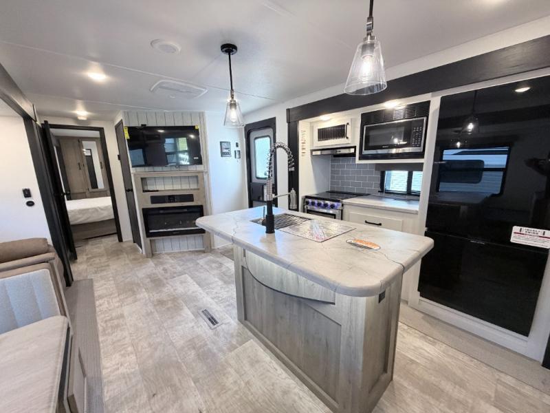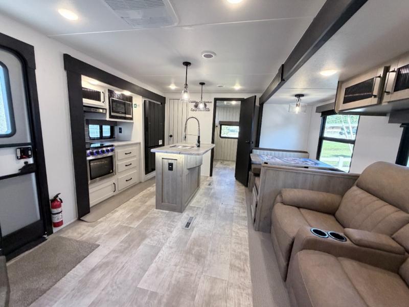 The Palomino Puma 32BHFS is designed for large families and unforgettable adventures, offering a spacious layout with a private bunkhouse, full kitchen, and front bedroom suite. Stay cool with three A/C units and enjoy modern comforts like a 40" HD LED TV and tankless water heater. With rugged construction, thoughtful storage, and indoor-outdoor cooking options, this travel trailer combines durability and comfort in one impressive package.