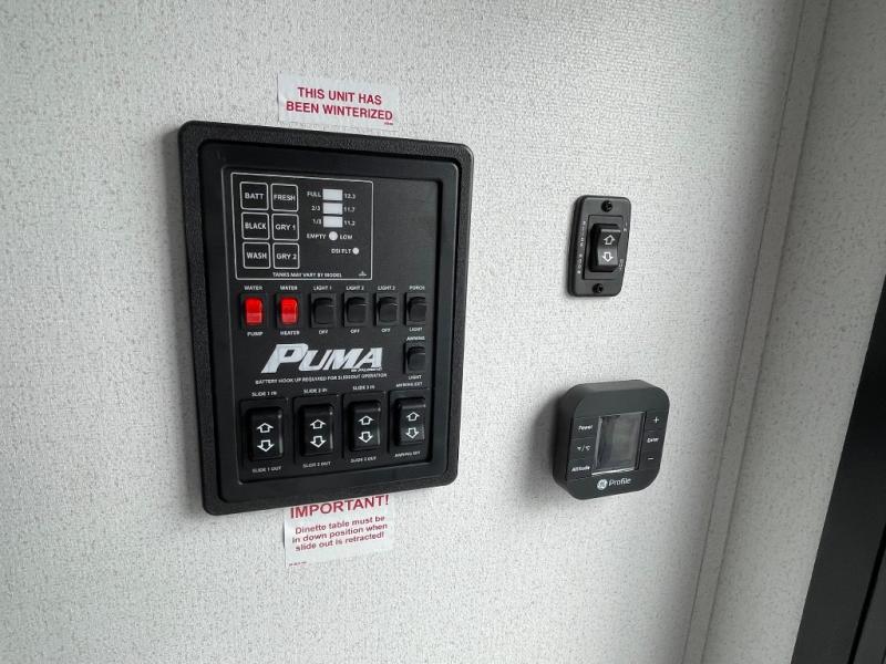If you're looking for family-fun adventures then you need one of these Palomino Puma fifth wheels or travel trailers! They are built rugged, easy to tow, and jam packed with features. The Darco wrapped underbelly will protect your units vitals and the AlphaPly roofing membrane covers it. They also have new aluminum wheels and a powder coated steel I-beam frame. Inside, the Congoleum linoleum will be easy to keep clean, and the night roller shades will provide privacy when it's time to turn in. You'll also enjoy an electric awning with an LED light strip plus an AM/FM/Bluetooth stereo and two outside speakers to keep the party going!