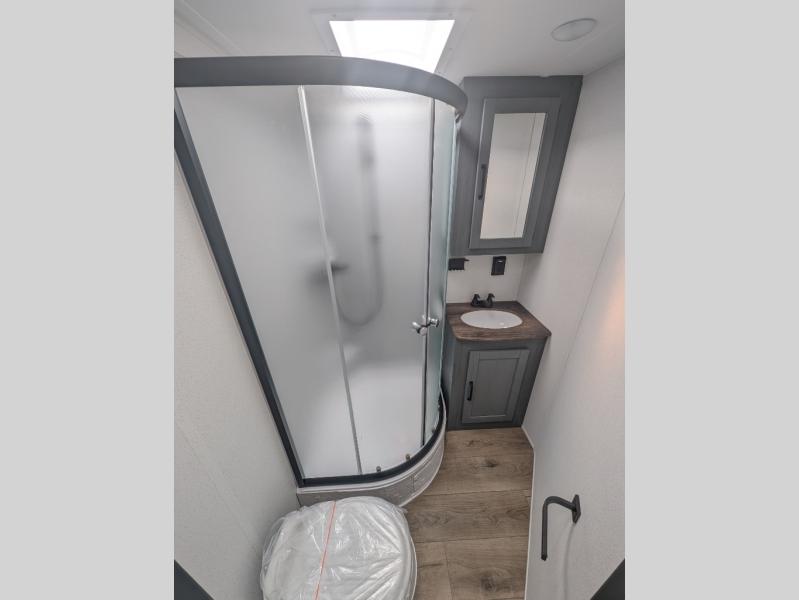 Enjoy the convenience of a 34" x 34" radius shower in the full bathroom, or clean up after a day of adventure with the outside shower. Add the optional mini outdoor kitchen to cook under the stars!
