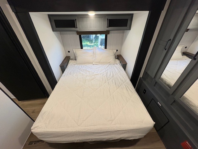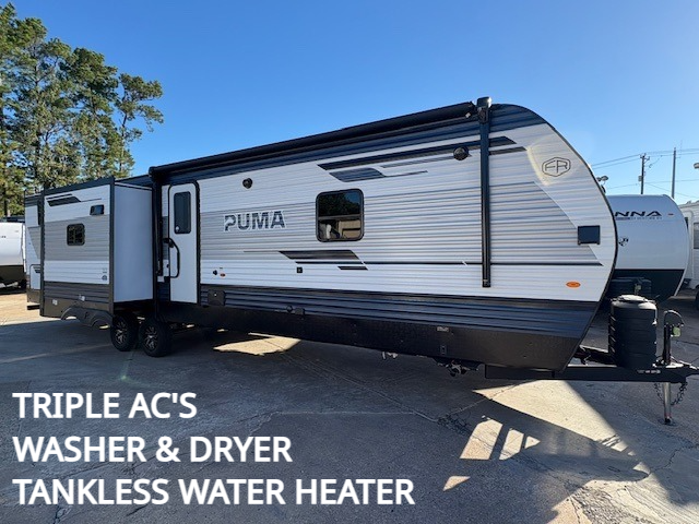 If you're looking for family-fun adventures, then you need one of these Forest River Puma travel trailers! They are built rugged, easy to tow, and jam packed with features. The Darco wrapped underbelly will help protect your unit, and the roof and side mount solar prep gives you the option to add off-grid power. Inside, the Congoleum linoleum will be easy to keep clean, and the night roller shades will provide privacy when it's time to turn in. You'll also enjoy an electric awning with an LED light strip plus an AM/FM/Bluetooth stereo and two outside speakers to keep the party going!
