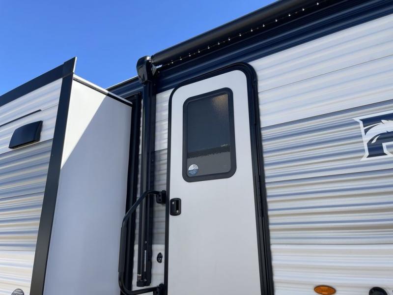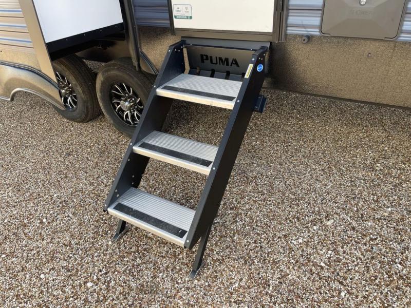 If you're looking for family-fun adventures then you need one of these Palomino Puma fifth wheels or travel trailers! They are built rugged, easy to tow, and jam packed with features. The Darco wrapped underbelly will protect your units vitals and the AlphaPly roofing membrane covers it. They also have new aluminum wheels and a powder coated steel I-beam frame. Inside, the Congoleum linoleum will be easy to keep clean, and the night roller shades will provide privacy when it's time to turn in. You'll also enjoy an electric awning with an LED light strip plus an AM/FM/Bluetooth stereo and two outside speakers to keep the party going!