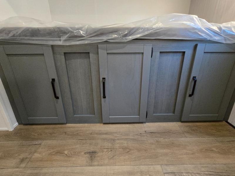 - Jackknife sofa and a U-shaped dinette for seating that also convert into sleeping areas.