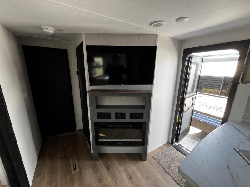 If you're looking for family-fun adventures then you need one of these Palomino Puma fifth wheels or travel trailers! They are built rugged, easy to tow, and jam packed with features. The Darco wrapped underbelly will protect your units vitals and the AlphaPly roofing membrane covers it. They also have new aluminum wheels and a powder coated steel I-beam frame. Inside, the Congoleum linoleum will be easy to keep clean, and the night roller shades will provide privacy when it's time to turn in. You'll also enjoy an electric awning with an LED light strip plus an AM/FM/Bluetooth stereo and two outside speakers to keep the party going!