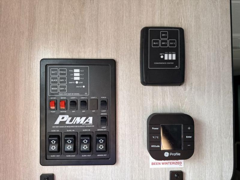 If you're looking for family-fun adventures then you need one of these Palomino Puma fifth wheels or travel trailers! They are built rugged, easy to tow, and jam packed with features. The Darco wrapped underbelly will protect your units vitals and the AlphaPly roofing membrane covers it. They also have new aluminum wheels and a powder coated steel I-beam frame. Inside, the Congoleum linoleum will be easy to keep clean, and the night roller shades will provide privacy when it's time to turn in. You'll also enjoy an electric awning with an LED light strip plus an AM/FM/Bluetooth stereo and two outside speakers to keep the party going!